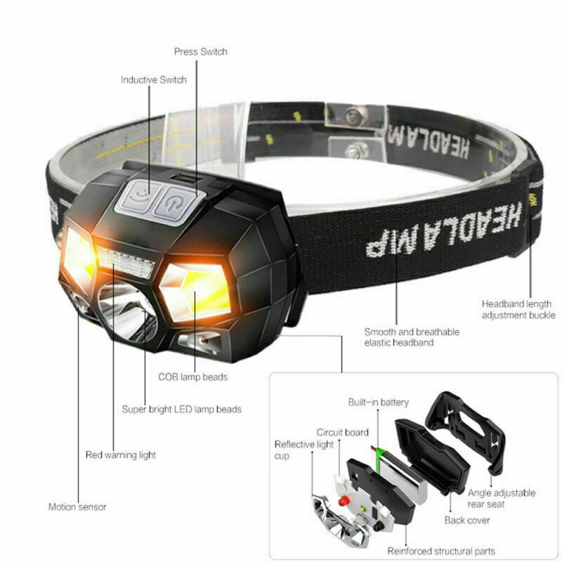 LED Head Torch Headlight COB Camping Headlamp USB Rechargeable Flashlight Lamp