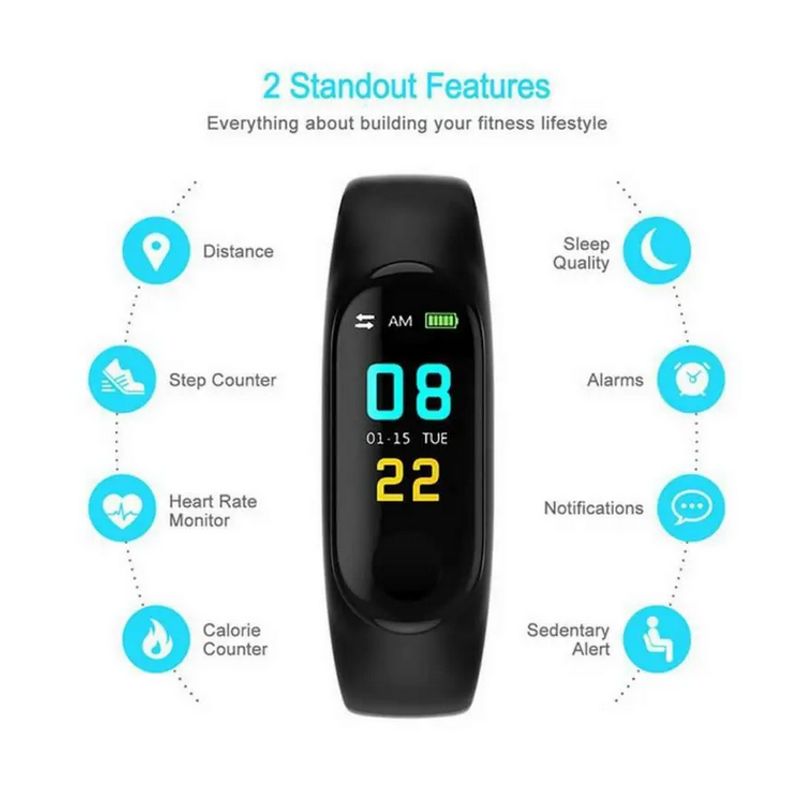 M3 Smart Band Watch Sport Wristband Fitness Tracker Heart Rate Blood Pressure (Black)