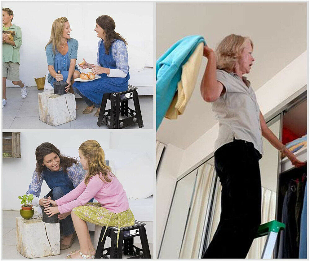BEST QUALITY AND SAFETY DESIGN: Our super strong sturdy folding step stool are made of heavy duty materials for long lasting durability. On the surface of the folding step stool have the skid resistant top which will give you amazing comfort and safety for everyone, including kids and adults.