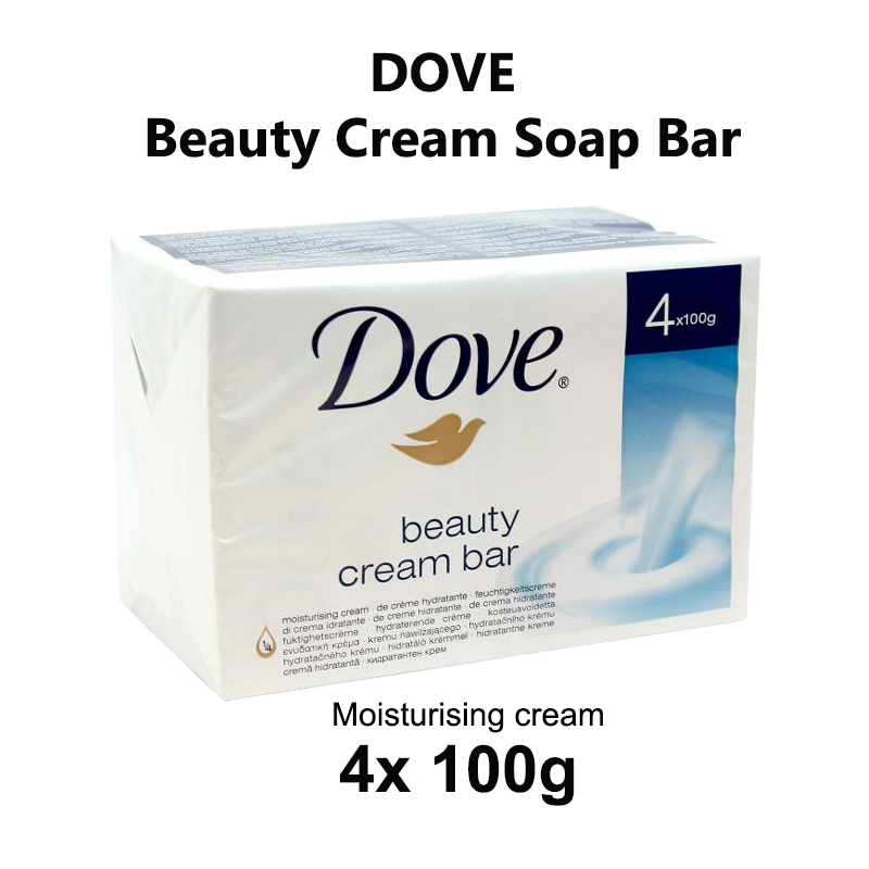 4x 100g Dove Beauty Cream Bar Made from neutral cleansing ingredients and 1/4 moisturising lotion, the original cream bar doesn't dry your skin like ordinary soap can, leaving it feeling softer and smoother throughout the day. With ? moisturising cream at the heart of the Dove product range, maintaining and flaunting your natural beauty is simple Replacing the moisture that your skin loses every day works wonders to give you a healthy, gorgeous glow day in, day out. Every day moisturisation brings beautiful results Radiant Skin Softer, smoother skin Reduces appearance of wrinkles Healthier skin Ultimately, happy skin.