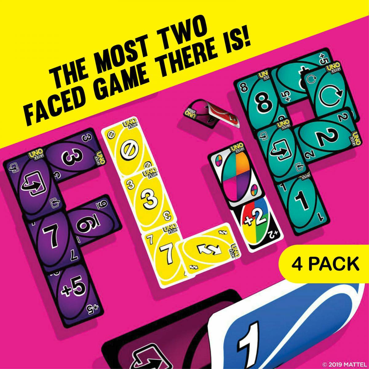 Play the special FLIP card and all cards are turned over, including the draw pile, to reveal an entirely new set of numbers and colors