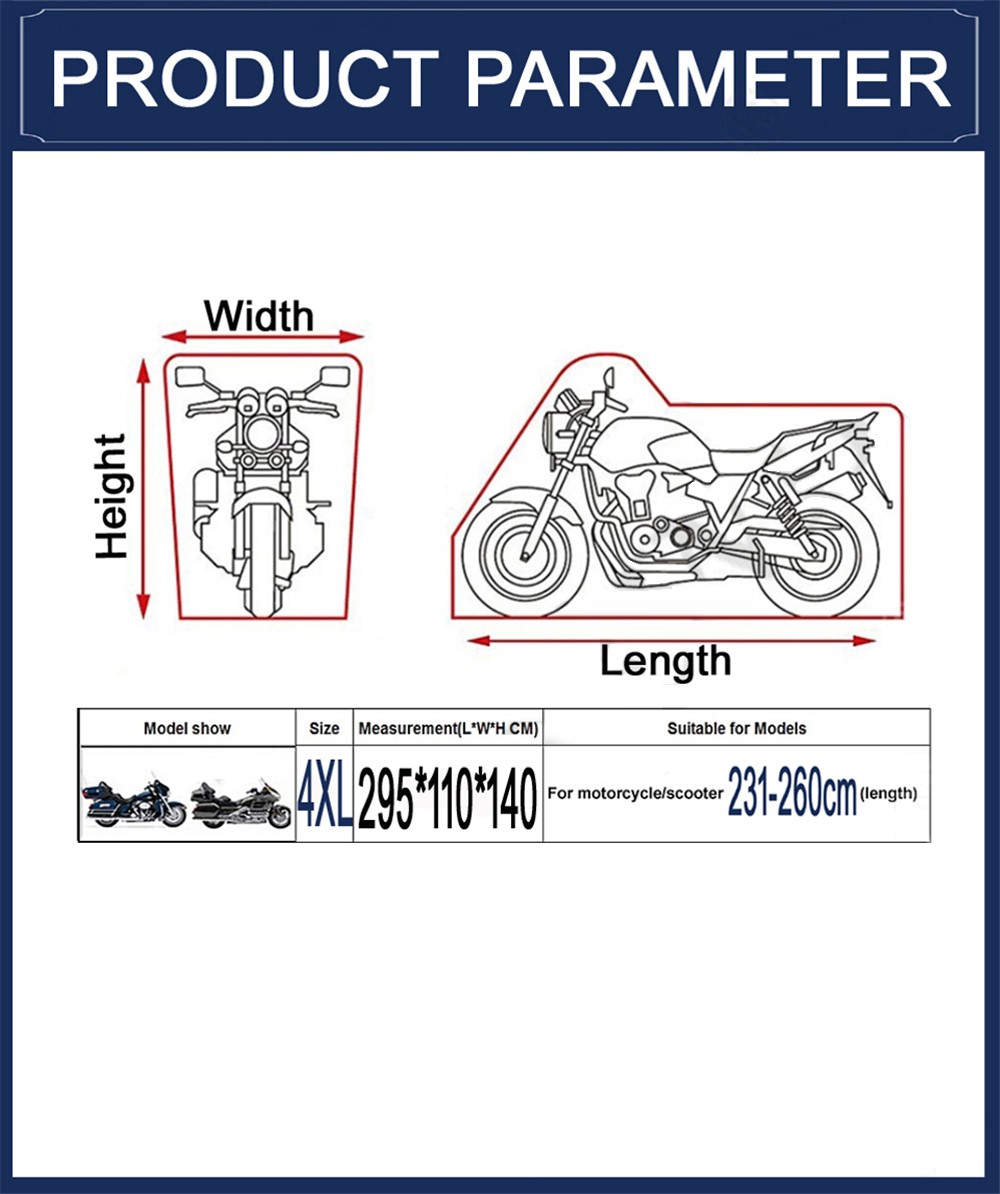 IMPROVED WEATHER PROTECTION –Protect your motorcycle against rain, dust, heat, tree sap,inclement weather with top to bottom coverage.