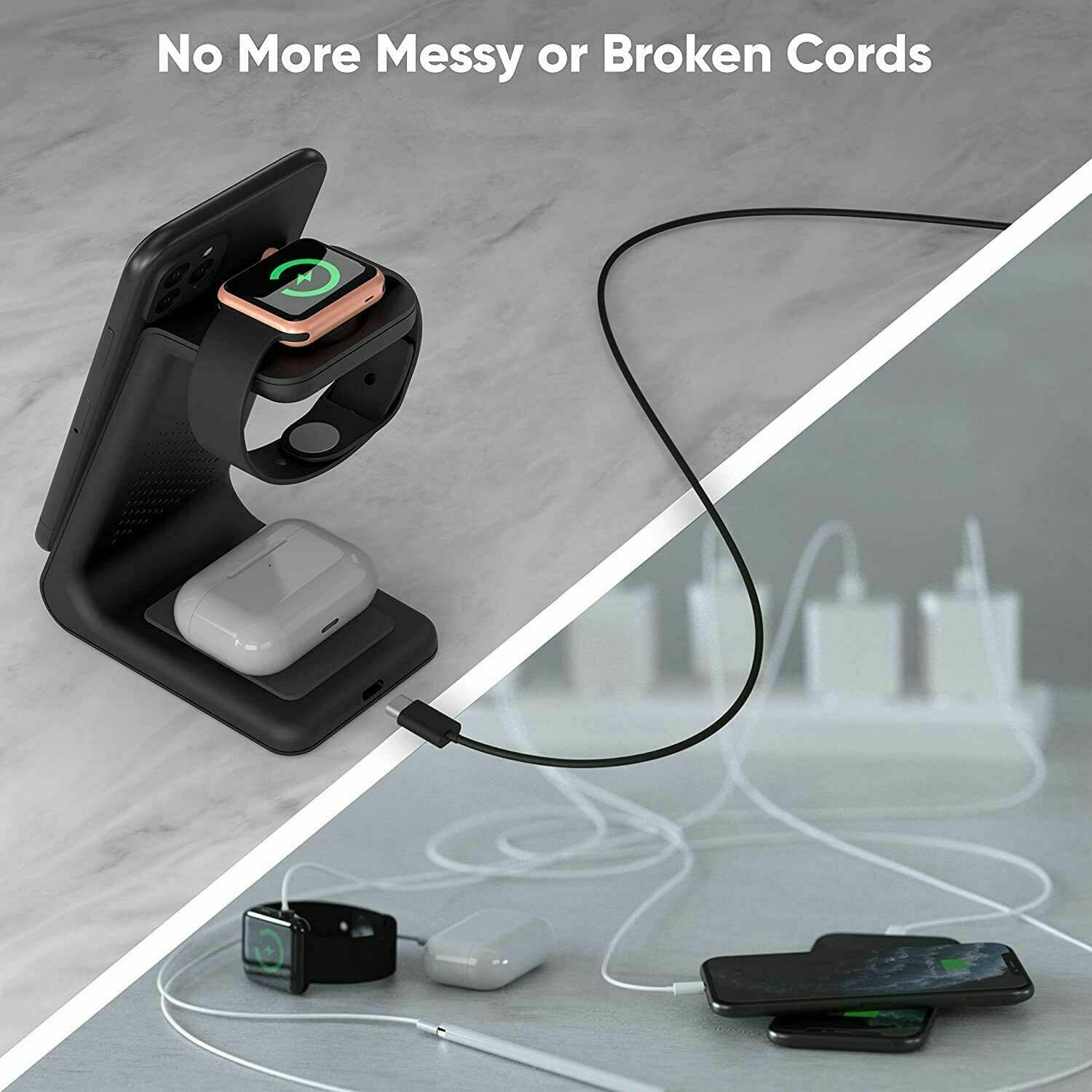 3in1 Qi Wireless Charger Fast Charging Dock Stand For Airpods Apple Watch iPhone