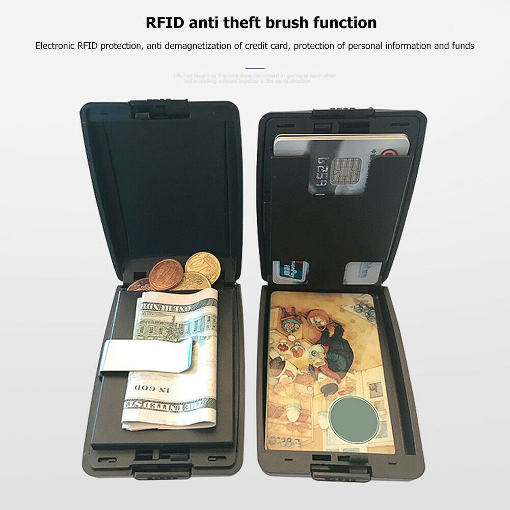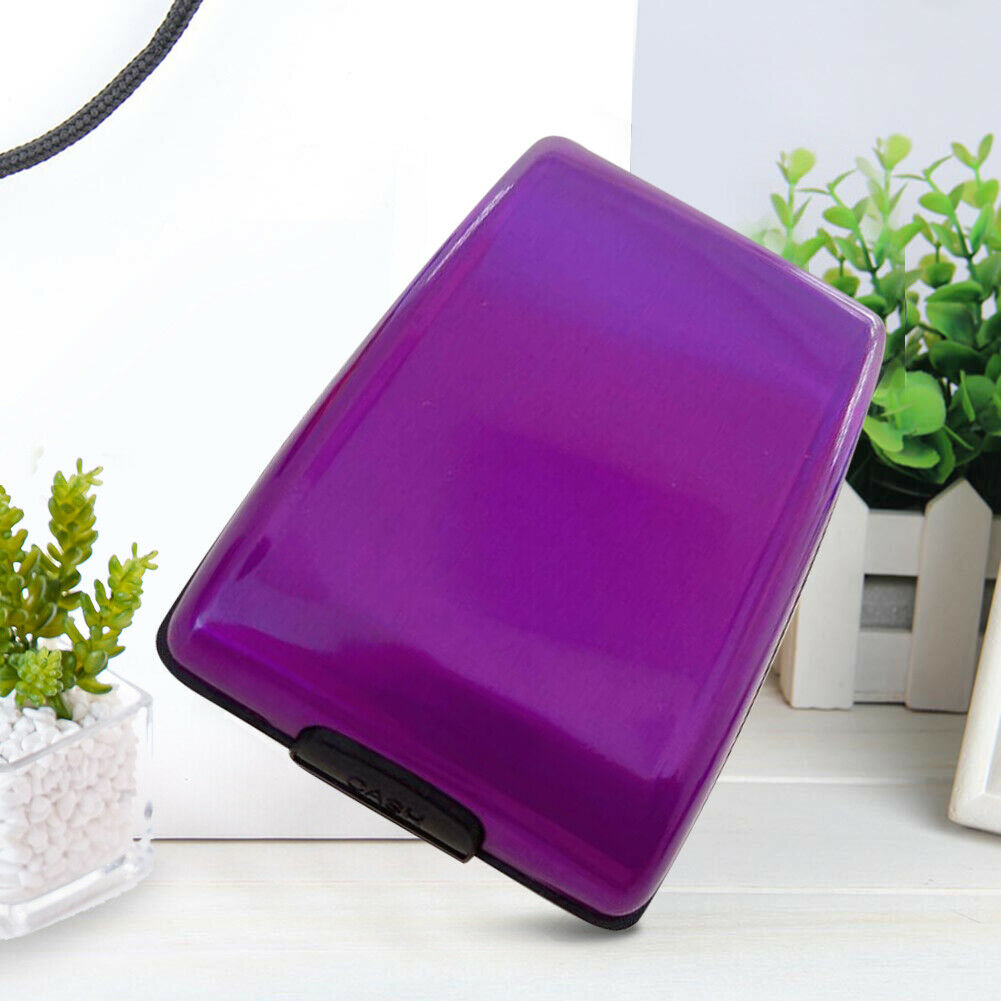 Description: Aluminum Alloy RFID Credit Bank Card Holder Men Women Wallet Money Bag Multi-function Business Card Purses PocketFeature:Multi-functional card bag, which can neatly store credit cards, business cards, wallets and coins, etc.RFID anti-theft brush function, anti-degaussing credit card, protecting personal information and funds.Convenient locking, tight and practical internal structure, easy to use.The storage compartment can accommodate up to 6 credit cards, and another storage compartment can store business cards, receipts, tickets or 2 other credit cards.Specification:Material: Aluminum alloy ABS stainless steelSize: 105 * 70 * 30mm/4.13*2.75*1.18inColor: PurpleApplicable: Women menNote:1. Due to the different monitor and light effect, the actual color of the item might be slightly different from the color showed on the pictures. Thank you!2. Please allow 1-3cm measuring deviation due to manual measurement. Included: 1 X Bank Card Case