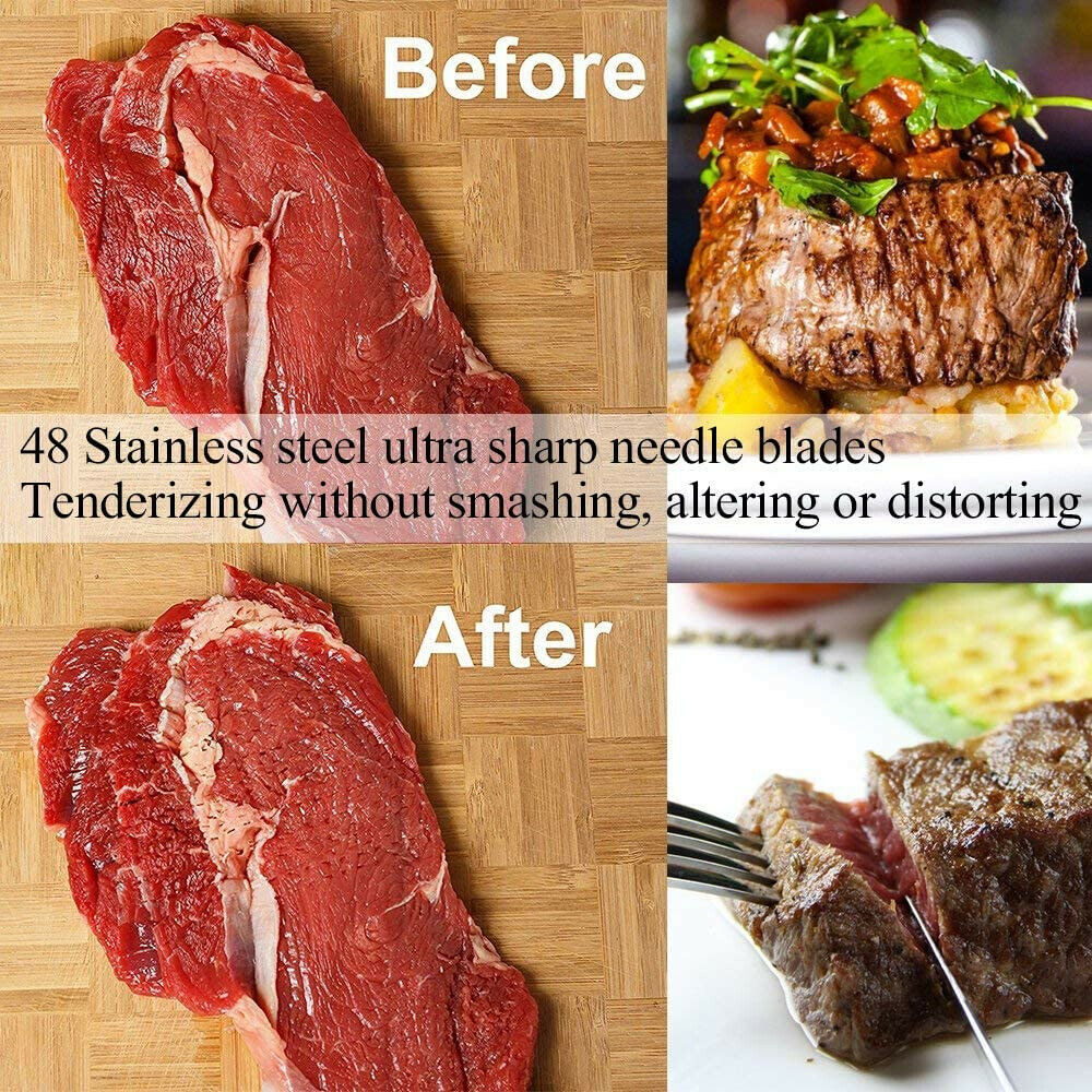 - 【HIGH QUALITY &SAFETY 】 -Integrated high-quality stainless steel blade is tougher and more durable, will not be corroded and get rusty, and the tip of the blade is carefully polished, it can maintain sharpness performance even when used daily. Our meat tenderizer has a safety design with a protective cover that expands into the meat when pressed, automatically retracts the steel needle when no force is applied, No Scratching.