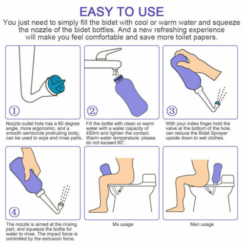 You just need to simply fill the bidet with cool or warm water and squeeze the nozzle of the bidet bottles. And a new refreshing experience will make you feel comfortable and save more toilet papers.