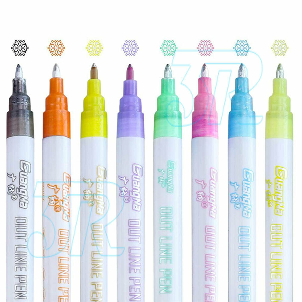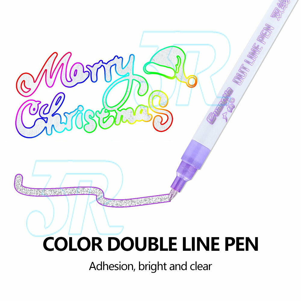 8IN1 Color Double Line Pen Set ● Multi-purpose use: Greeting Card, Journaling, Doodling, Scribbling, Planning, ● Poster Making,Drawing,Highlighting etc.● Smooth writing with durable fiber tip, Elegant Clear Clips.not easy to break the ink, bright color, not easy to fade.● Colour double line, writing soft cute● You can draw lines of different sizes.● Round pen body, comfortable grip, overall compact and stylish appearance, easy to carry.● Features a chisel tip that helps you achieve fluid, elegant strokes. Available in 8 subtle colors that will enhance your design and allow you to express your creativity.● 8 Vivid Metallic Colours, Including Black, Green, Purple, Orange, Pink, Light Blue, Dark Blue and Yellow