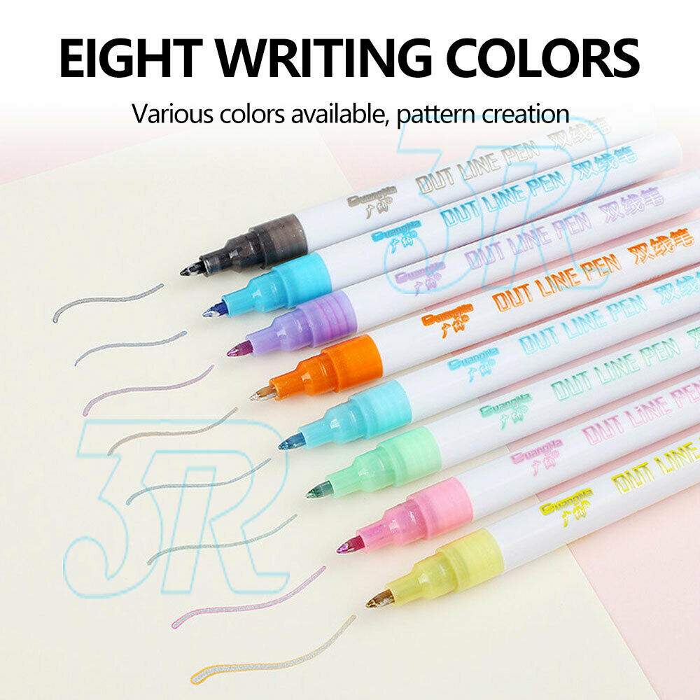 Drawing Double Line Outline Pen Highlighter Marker 8 Colors Pen Set For School