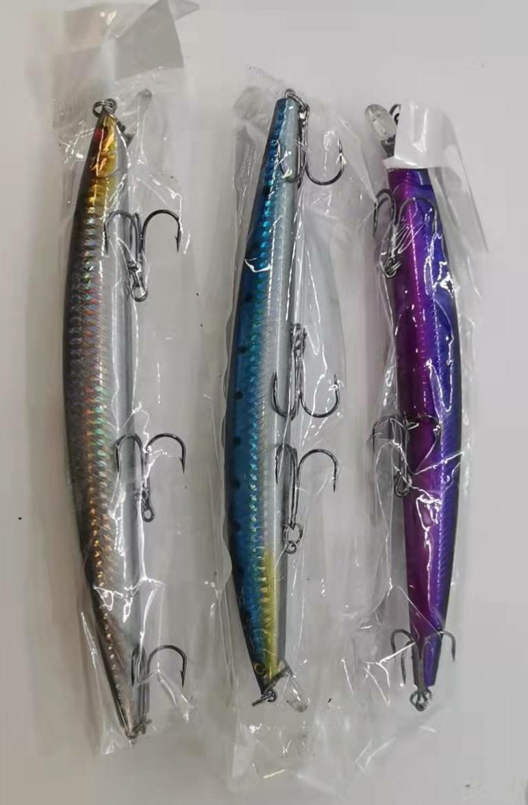Description: 3 Pieces baits Fishing Lures , Our topwater fishing lures,Multi-colors are avaiable.Bright colors and realistic baits, attracting fish that can be used in salt water and fresh water.The durable ABS plastic construction makes it equipped with sharp qulity hooks, making it a powerful capture tool.Use 3D fisheye, unique design and colorful color to attract the fishes.Wonderful fishing tool perfect for ocean, lake, river, reservoir, pond and stream.for Pike, snakehead, bass , etc for both saltwater and freshwater, perfect For All Ages And Skill Levels. Specification: Material: ABS PlasticSize: 19CM Package Includes: 3 Piece Fishing Lures(with hooks)