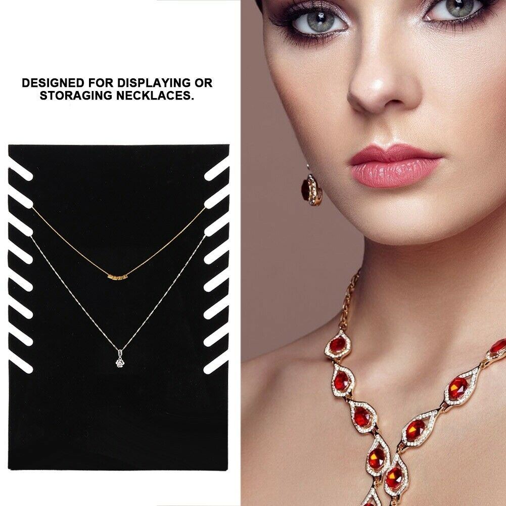 Features:1. Designed for displaying or storaging necklaces. 2. Exquisite design, beatutiful and practical. 3. Adopts high quality material, not easy to deform and durable to use.4. Its soft flannel material will protect the jewelry from damage.5. Can be used in tradeshows, jewelry stores, jewelry organization, etc.Specification:Item Type: Necklace DisplayMaterial: FlannelColor: BlackSzie: Approx. 28 x 19cm / 11 x 7.5inWeight: Approx. 117gPackage List: 1 x Necklace Display