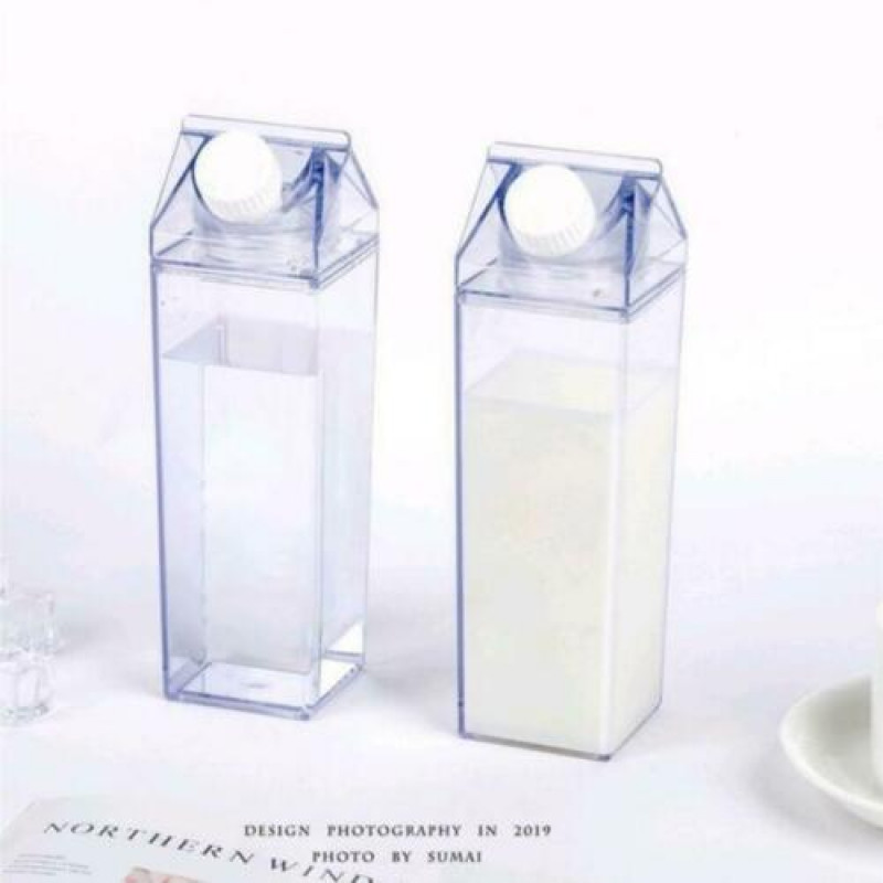 2 pcs of Clear Milk Carton Box Bottle Plastic Juice Bottles for Outdoor Climbing Travel