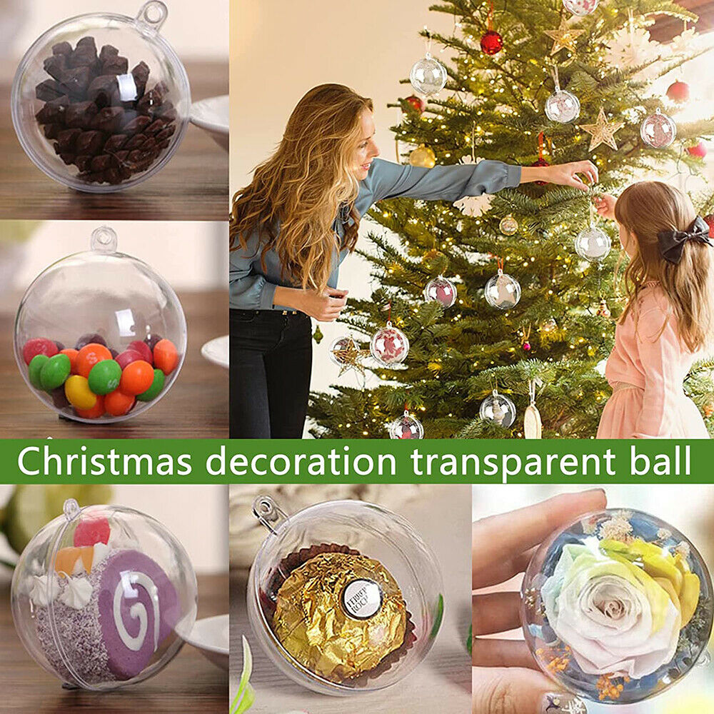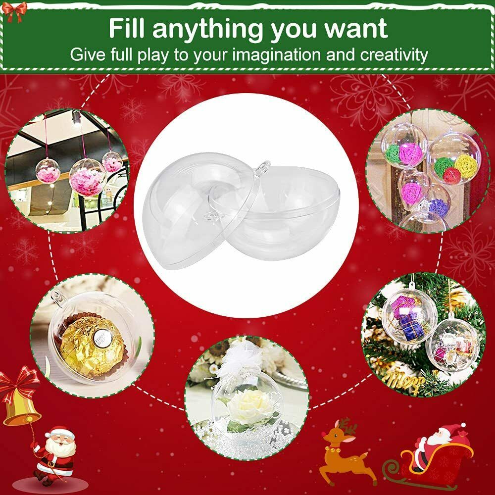 30PCS Christmas Ball Fillable Plastic Baubles Clear Cra Decor Tree Ornament