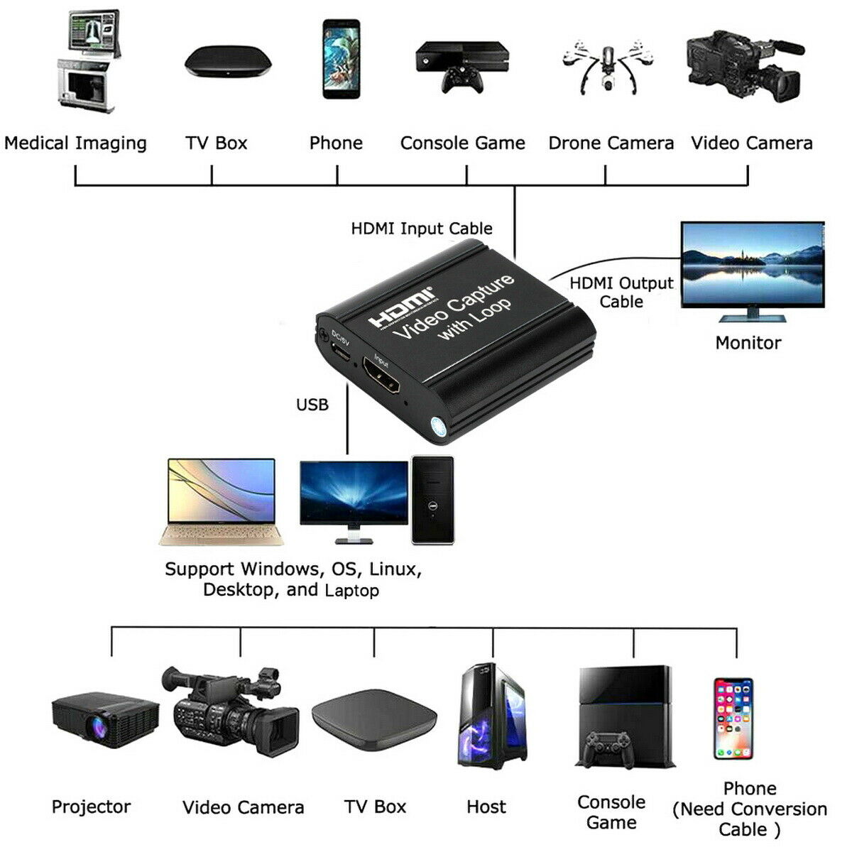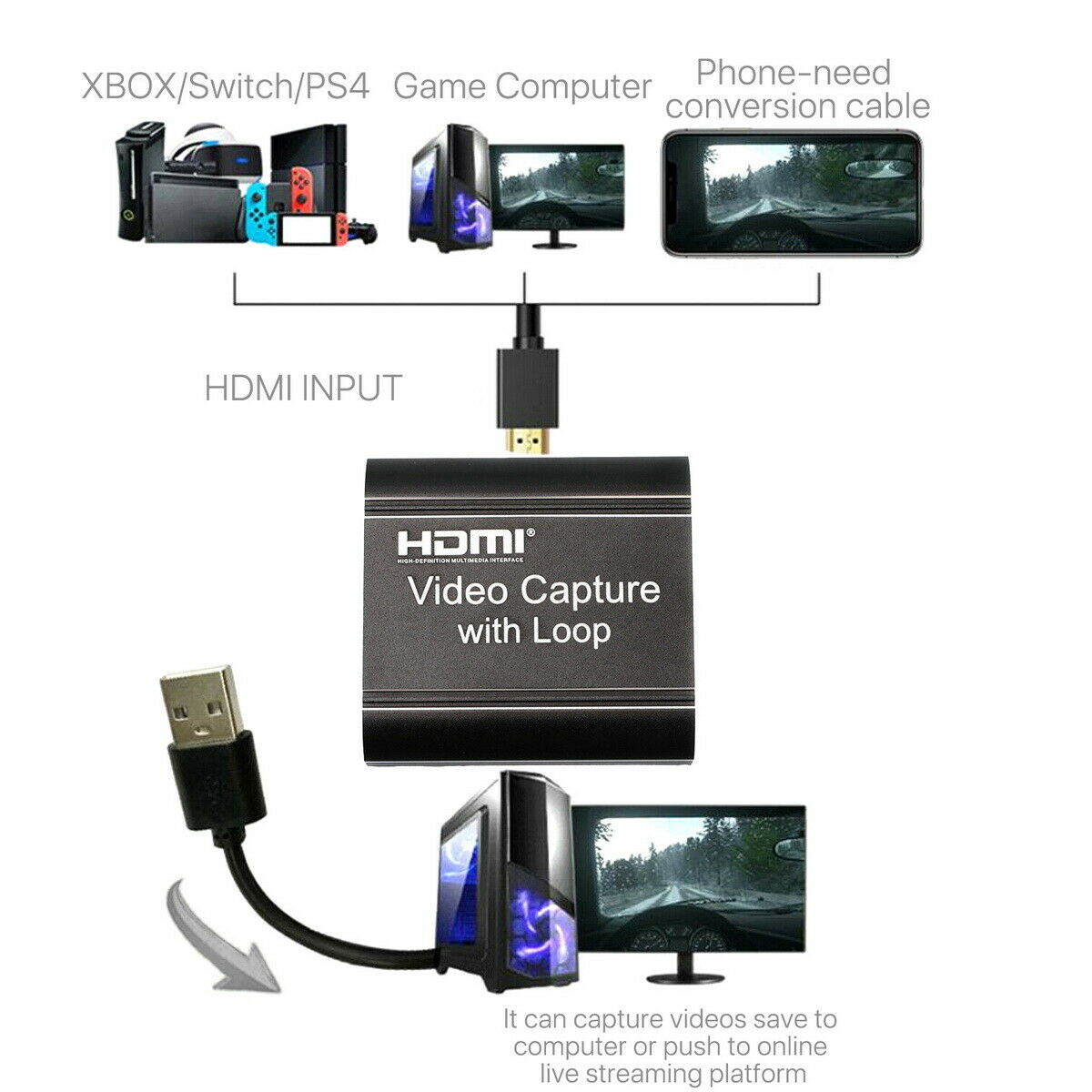 HDMI Video Capture Card USB 2.0 Mic Game Record Live Streaming 4K HD 1080P 60fps