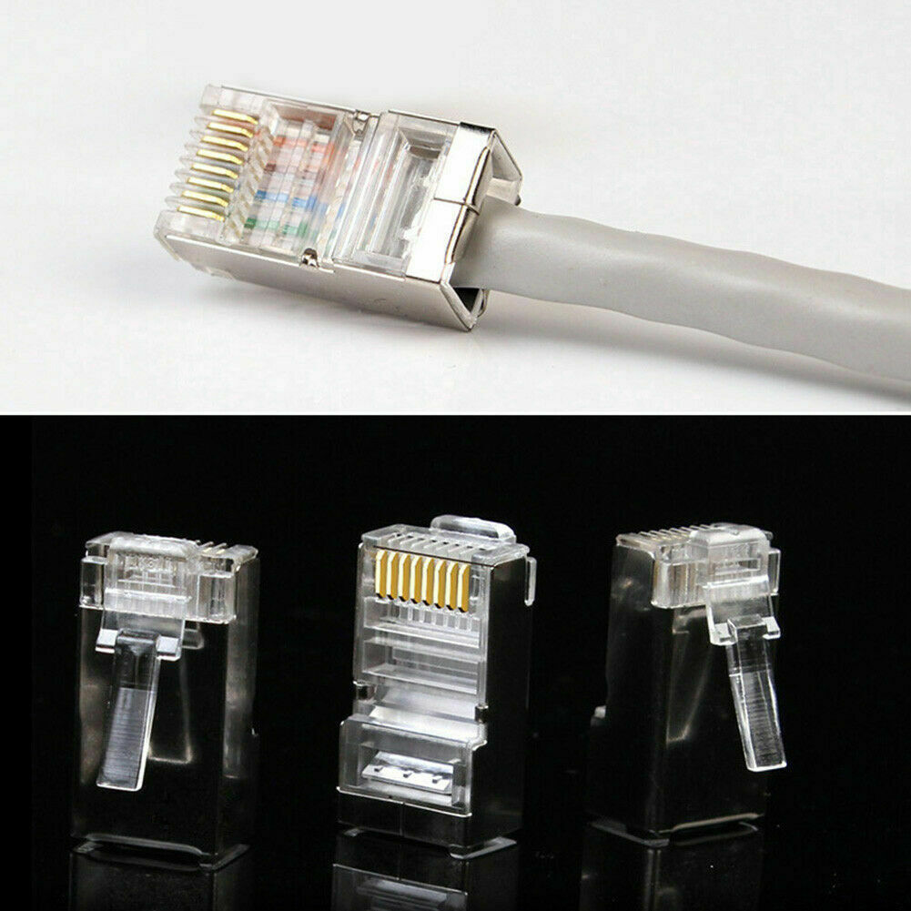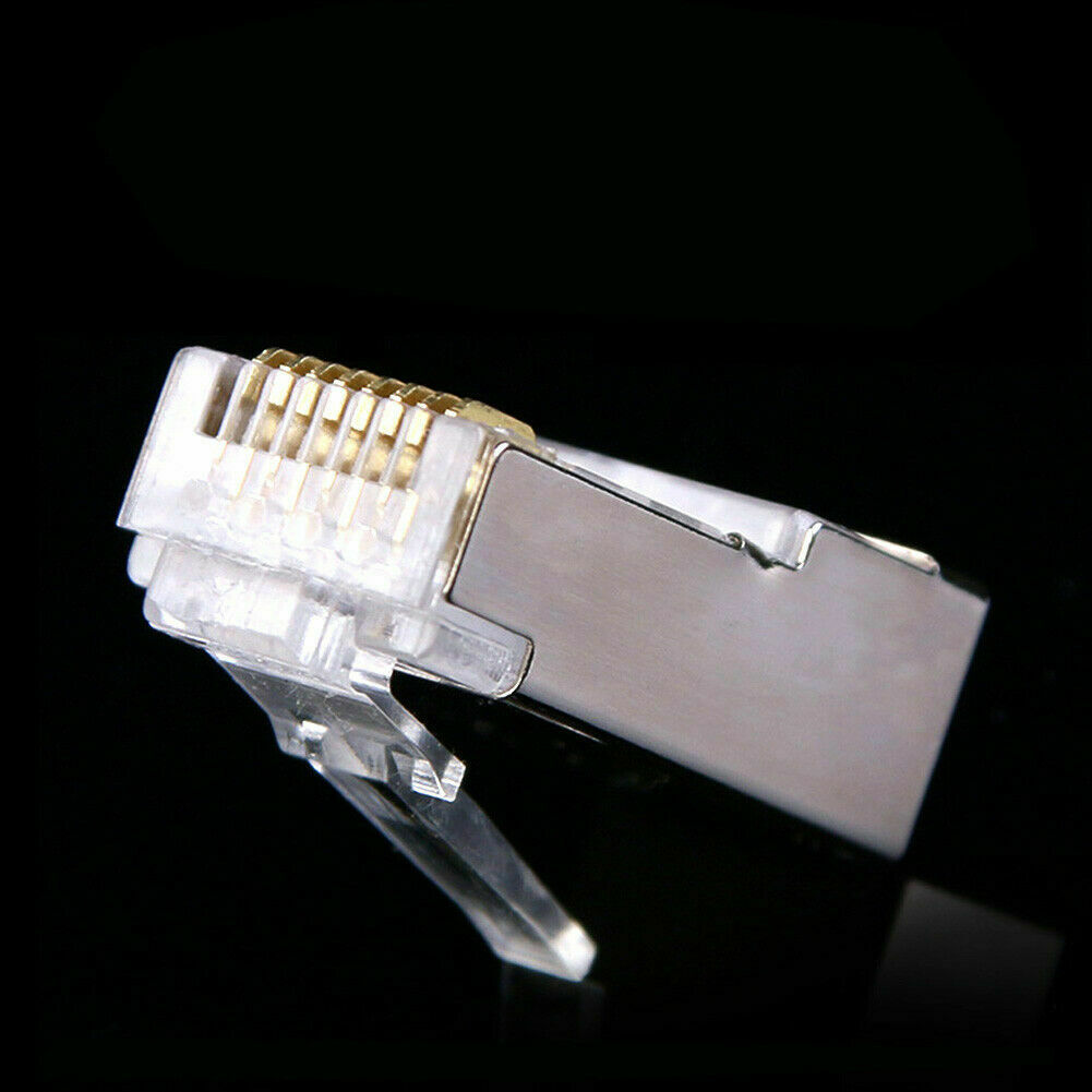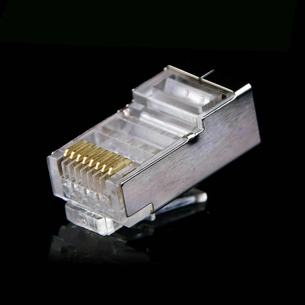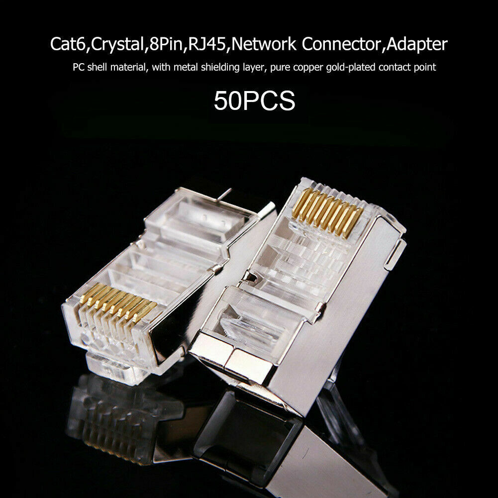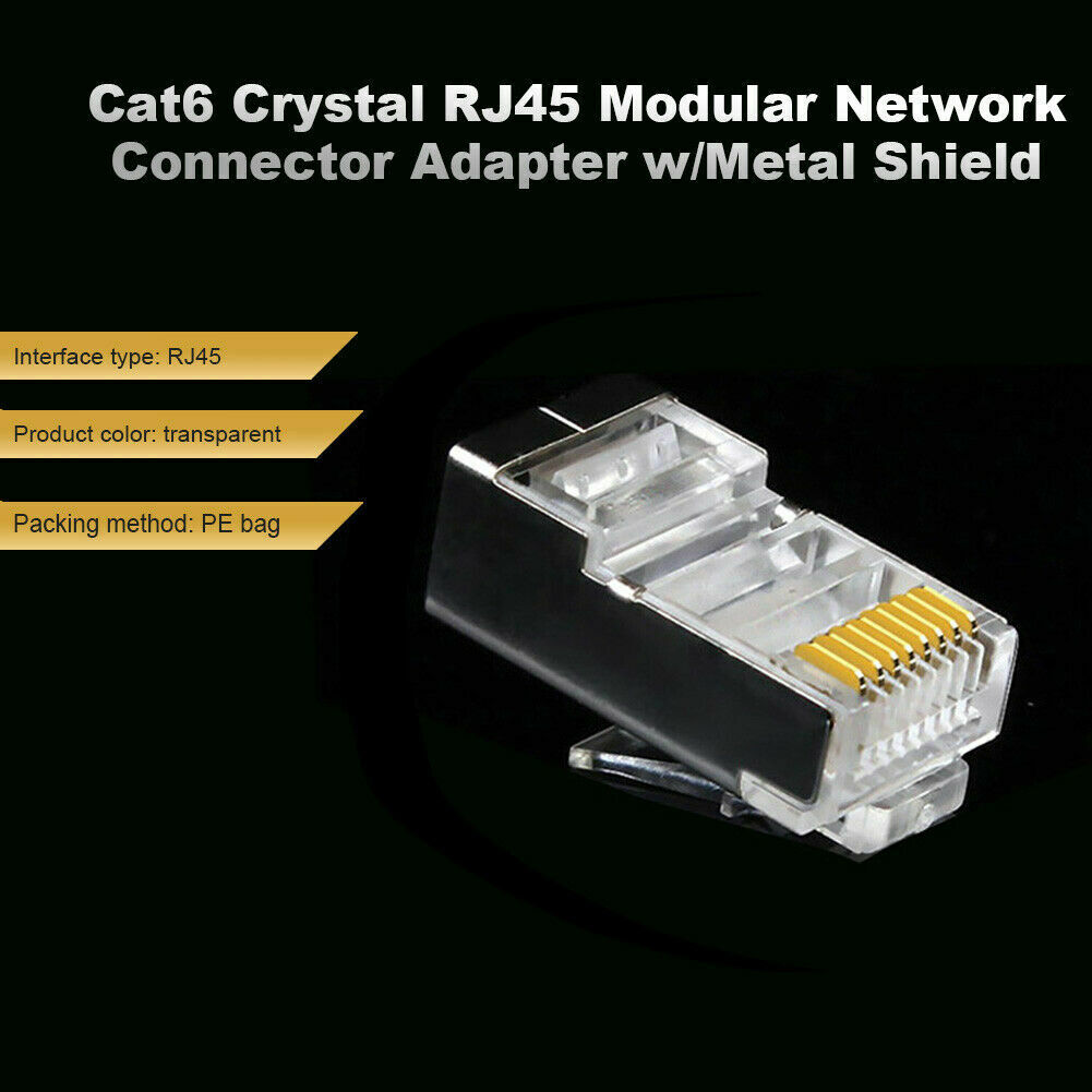 Cat6 Crystal RJ45 Modular Network Connector Adapter w/Metal Shield (50pcs)