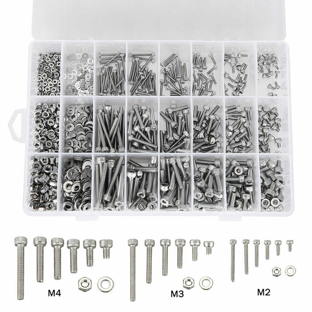 High Quality 304 Stainless Steel Hex Socket Head Cap Screws bolts Nuts Flat Washers Kit. Many various sizes of M2 M3 M4 M5screws with matching nuts and flat washers meet different people’s demands, the necessity of your home life. Made of high quality stainless steel, the stainless steel material provides strength and offers good corrosion resistance in many environments. Equipped with a plastic box, you can classify screws in an organized manner, more convenient to carry and take out. Use this fastener make the mechanical parts firmly in place. This kit can be widely used in all kinds of precision machinery, classified instruments, instruments, electronic products, household appliances, communication products, locks, lamps, lights, toys, etc.