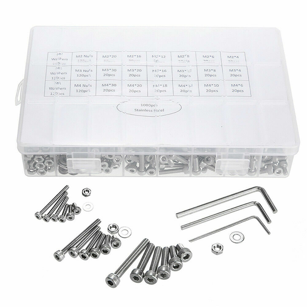 1080pcs M2/M3/M4/M5 Stainless Steel Bolts Nuts Screws Hex Head Assorted Kit Set
