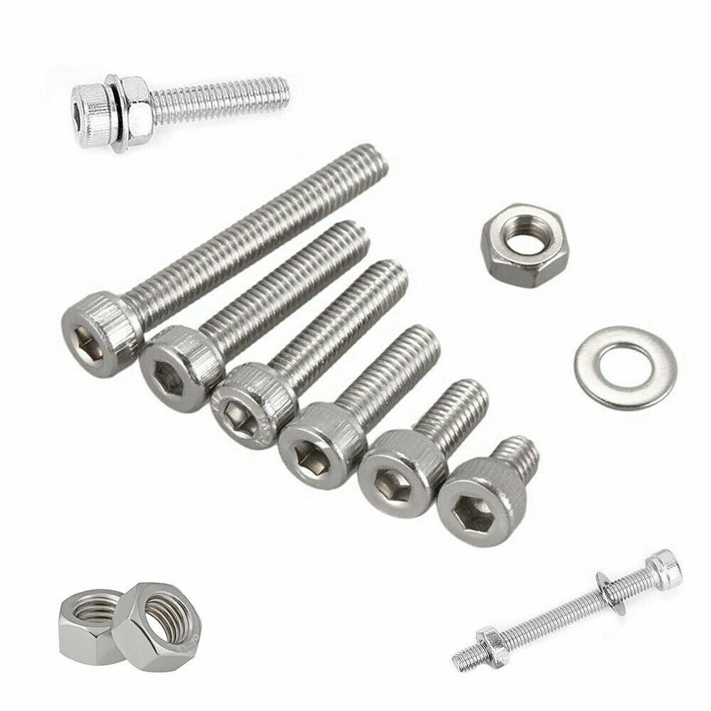 Features: - High Quality 304 Stainless Steel Hex Socket Head Cap Screws bolts Nuts Flat Washers Kit.