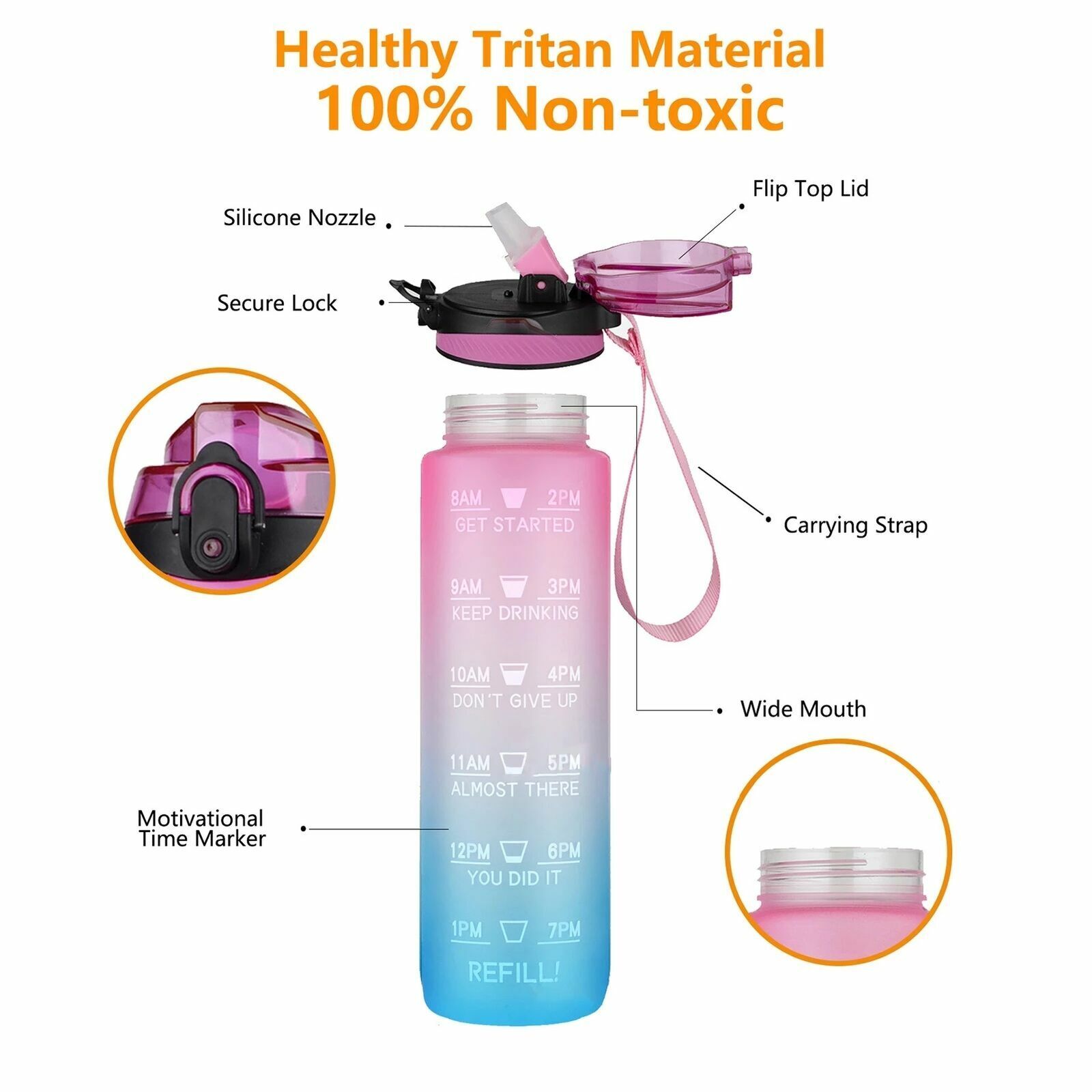 3. Food Grade Material: The water bottle is made of durable Tritan material, BPA free; it is odorless and healthy for your drinking.