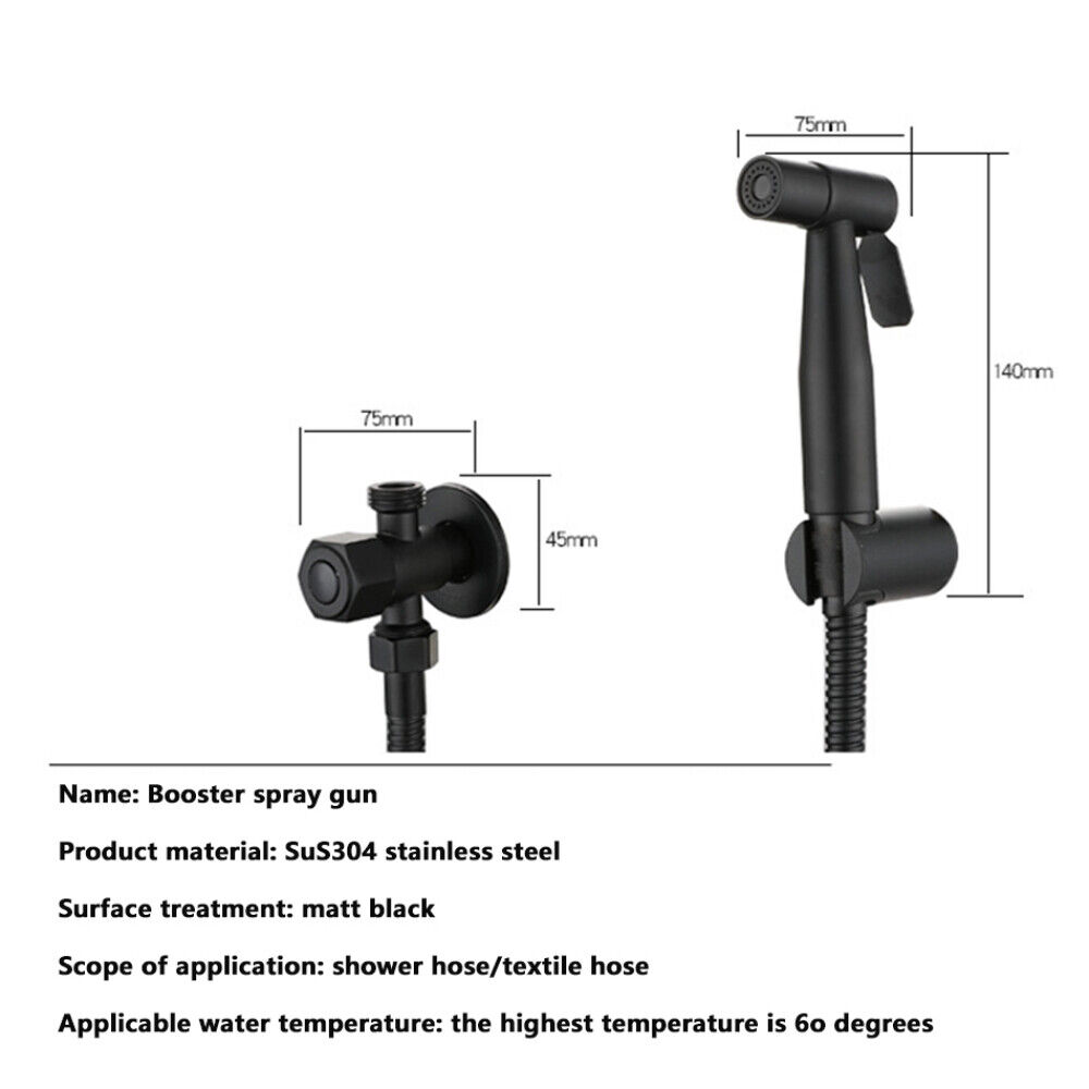 Feature: 1. It is made of stainless steel, heat-insulating, anti-scalding, not easy to slide; preventing rust, bursting, and leakage, as long as new and durable. 2. The operation is simple, the water is discharged by pressing the button, and the even circular water hole is forced to control more water. 3. Easy installation, the installation can be easily completed in a few minutes, no plumber, no complicated tools, no need to purchase additional components for installation. 4. It can be disassembled for easy cleaning. Ergonomic handle design, comfortable to hold, no effort required. 5. Multifunctional use, not only suitable for bidets, but also ideal for cloth diaper sprays, dog showers, and cleaning potty bowls. Specification: Material: 304 stainless steel Colour: Black Style(optional):black dual purpose hexagon 1.5m black stainless steel tube spray gun receptacle Size: as shown Gross weight(Corresponding style ): 500g Surface treatment: matt black Packing list(Corresponding style ): #C : 1pc*black dual purpose hexagon 1pc*1.5m black stainless steel tube 1pc*spray gun receptacle