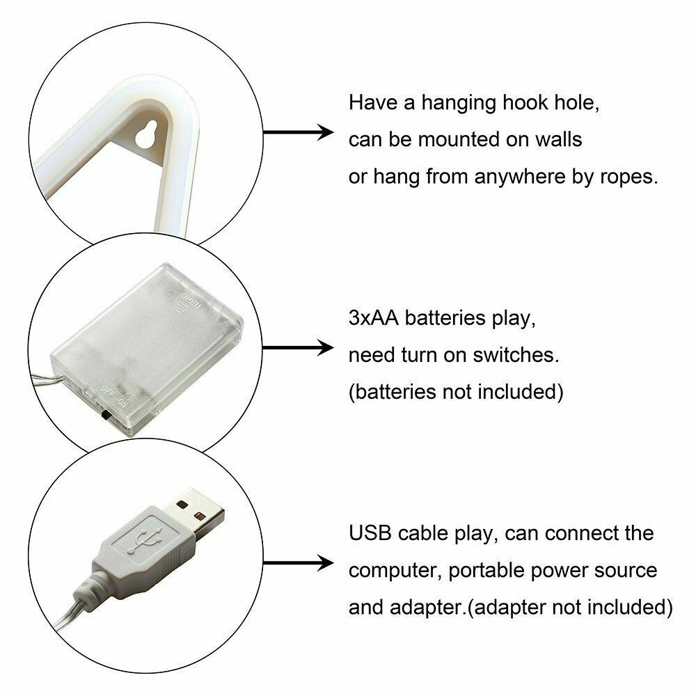Specification: Shell material: PVC Light color: Green Power supply: 3 x AA battery box (battery is not included) and USB port, dual use Power: 3W Service life: 50000h Note: Due to the different monitor and light effect, the actual color of the item might be slightly different from the color showed on the pictures. Thank you! Please allow 1-3mm measuring deviation due to manual measurement. Package included: 1 x LED Neon Light