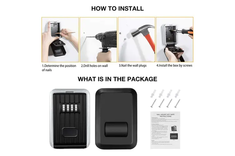 - 4-digit combination offers thousands of passwords settable, resettable, superior security.Wall-mounted design, comes with installation screws, can be fixed on any solid surfaces.