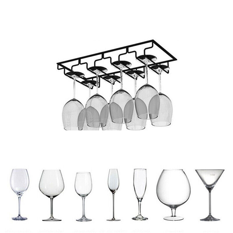 -Our wine glass is made of high-quality iron. has long service life. Not easy to bend or deformation, oxidizing and rusting. Wine glass rack features an opening widened mouth design, with the opening width 9cm/3.5 in, it is suitable for Champagne glasses,Bordeaux wine glasses, white wine glasses, cocktail glasses, etc ,don't worry about glasses falling down and make your kitchen bar more tidy.