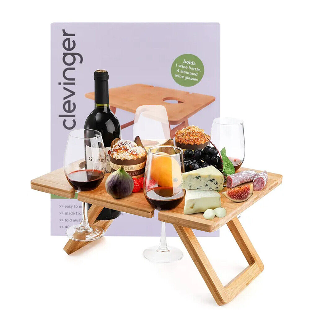 AU Bamboo Picnic Table With Wine Glass Holder Rack Folding Tray Outdoor Portable