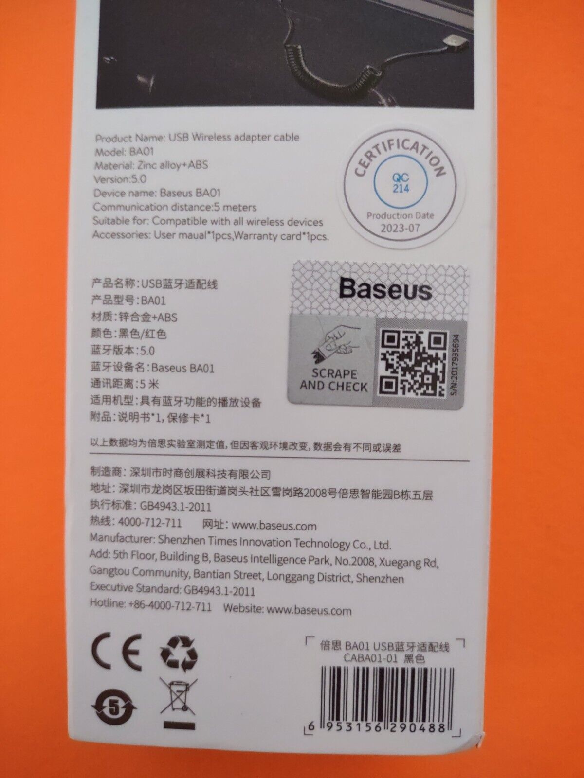 Item specifics Condition New: A brand-new, unused, unopened, undamaged item in its original packaging (where packaging is applicable). Packaging should be the same as what is found in a retail store, unless the item is handmade or was packaged by the manufacturer in non-retail packaging, such as an unprinted box or plastic bag. See the seller's listing for full details. See all condition definitionsopens in a new window or tab Brand BASEUS Type Adapter Color Silver, Black Model Baseus BA01 Connectivity Bluetooth, USB Ports USB 2.0 MPN BASEUS BA01 Features Hi-fi Sound, Phone Calls Bluetooth Standard Bluetooth v5.0 Country/Region of Manufacture China To Fit Car Auxiliary BaseusBluetooth 5.0 to AUX 3.5mm Adapter For Car USB 2.0Bluetooth5.0 for high-quality calls and hi-fi music on your car.Form Manufacturer:Item Size - 15.8*5.5*2.5CMModel Name - BASEUS BA01 USB Bluetooth AdapterSpecial Features – Bluetooth 5.0 USB Wireless adaptercableBrand Name - BASEUSPleaseview pictures for more information.Please follow our store for more art,antique, collecting, vintage & video games, etc.