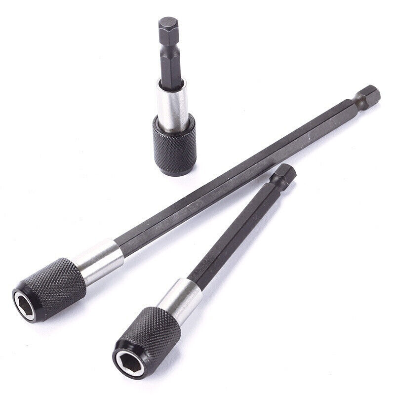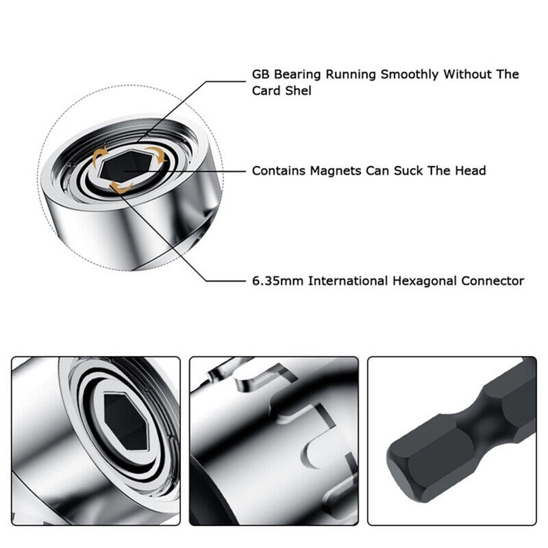 7PCS Impact Drill Bit Socket Adapter Set Extension Driver Bar Hex 1/4" 3/8" 1/2"105 Degree Angle Power Extension Drill AdapterThe gears are mounted in a die cast with 3 durable ball bearings.Strong bulid-in magnetic locking socket holds,avoid falling.Designs for tight spaces, extends the power of a cordless screwdriver, max torque: 10n/mChrome ploated,convenient,quickly changed, durable, long lasting and easy to use. perfect handy tool for hard-to-reach areas, 360 Degree parallelly adjustment.It's good for wrench and power drill, rechargeable drill or manual wrench.Light weight, fast, connect to the standard hex screwdriver.Note: Please adjust the torque to a minimum when using the electric screwdriver. Do not rely on it to tighten the screws if the hand drill is used.And tighten the angle driver adapter manually, or the gear will be broken off.Specifications:Color: SilverDIY supplies: ElectricMaterial: SteelFits: 1/4" 6.35MM Hex Drill Bit ScrewdriverSize: 5.9 X 3cmModel: 1/4"(6.35MM) 3Pcs Drill Bit Holder 60mm 100mm 150mm:Material: Stainless Steel; Shank Shape: 1/4inch Hex ShankAdvantage: Magnetic Screwdriver Bit Holder, Knurling For Large TorqueReaching places where hands can not normally reach into; which also holders very handy and flexibleSuitable for power drill, screwdriver, batch head and other to transfer. Extend all kinds of screwdriver bits,screwdriver head conversion uses; Fast, fastening; durable, quick change with high efficiency, Strong magnetism, limit the screwdriver's position and adjustable3Pcs Set Socket Adapter Hex Shank to 1/4" 3/8" 1/2" Impact Drill BitsSockets Standard: 1/4" Hex ShankType Length:(1/4" hex shank to 1/4" socket) Socket Adapter, Length: 65mm(1/4" hex shank to 3/8" socket) Socket Adapter, Length: 65mm(1/4" hex shank to 1/2" socket) Socket Adapter, Length: 72mmNote: Please accept the normal measure error.The color might has a color difference dut to the exposure.【Multifunction】 3 different useful tools,used in the installation of pneumatic screwdriver, electric screwdriver, pneumatic drill, manual screwdriver and other installation for the hexagonal tool .It is a good accessory for conversion.【High Quality】 Super Strong Heat Treated Chrome Vanadium Steel for Normal & Impact Drivers. Durable,Lasting and easy to use,Lightweight, fast, connect to the standard hex nut drivers, impact hole saws, spade bits and more