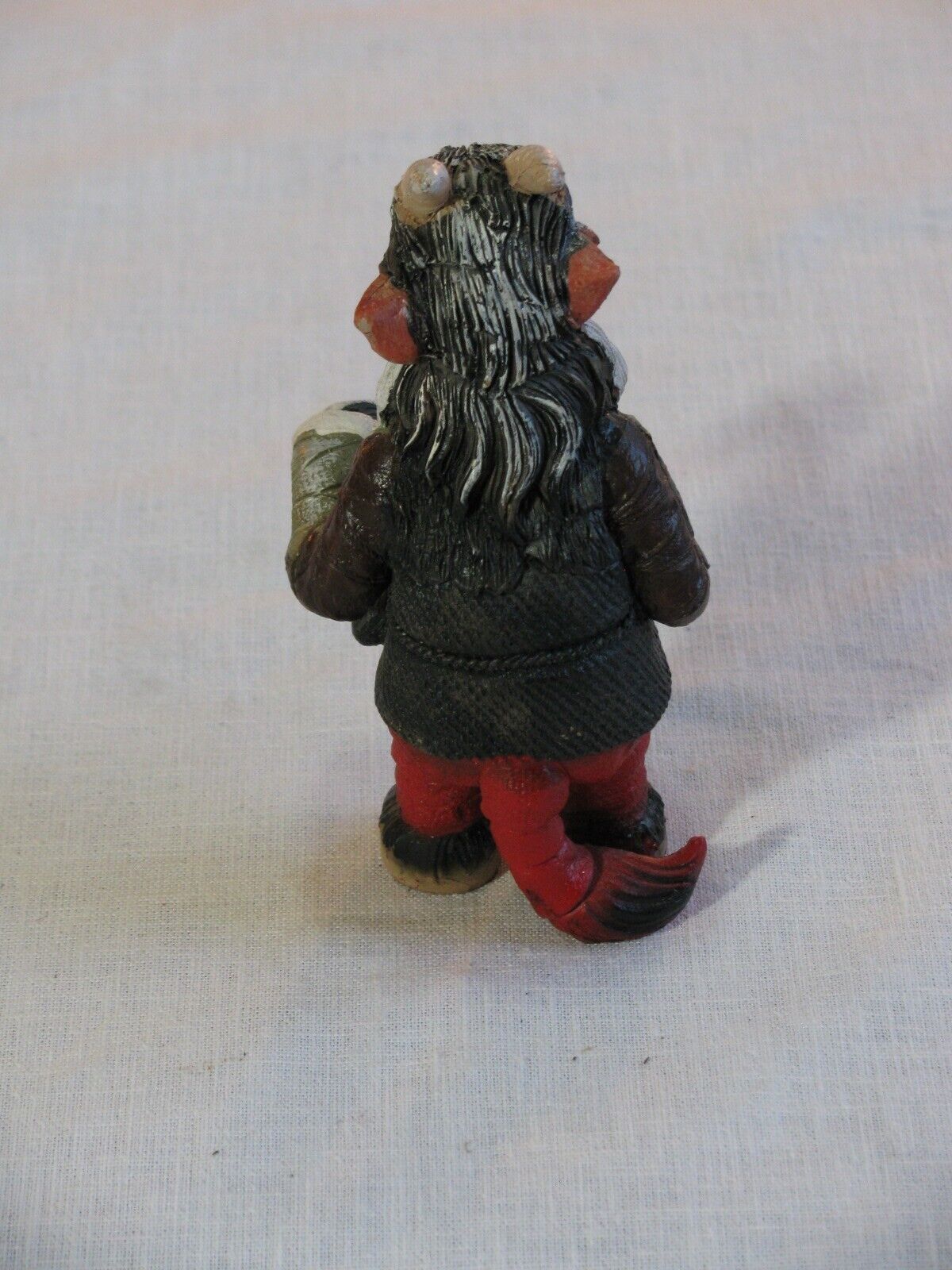 This is a vintage resin beak nose troll or gnome figurine.He features red pants.He is unmarked as to where, or by whom, he was made.He measures approximately 2" wide by 1 3/8" deep at his feet, and stands 5 1/8" tall.