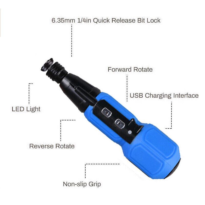 Rechargeable Screwdriver - This wireless electric screwdriver supports USB charging, which is convenient and fast. It can work continuously for 40 minutes after charging for 1 hour.
