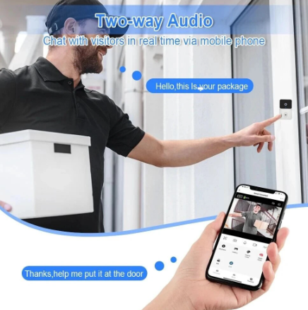 Wireless video doorbell camera: Support 2.4g WiFi and APP connection, 480P high resolution, photos and videos clearer, more details. Two-way audio: Built-in microphone lets you watch and chat with your visitors anytime, anywhere.