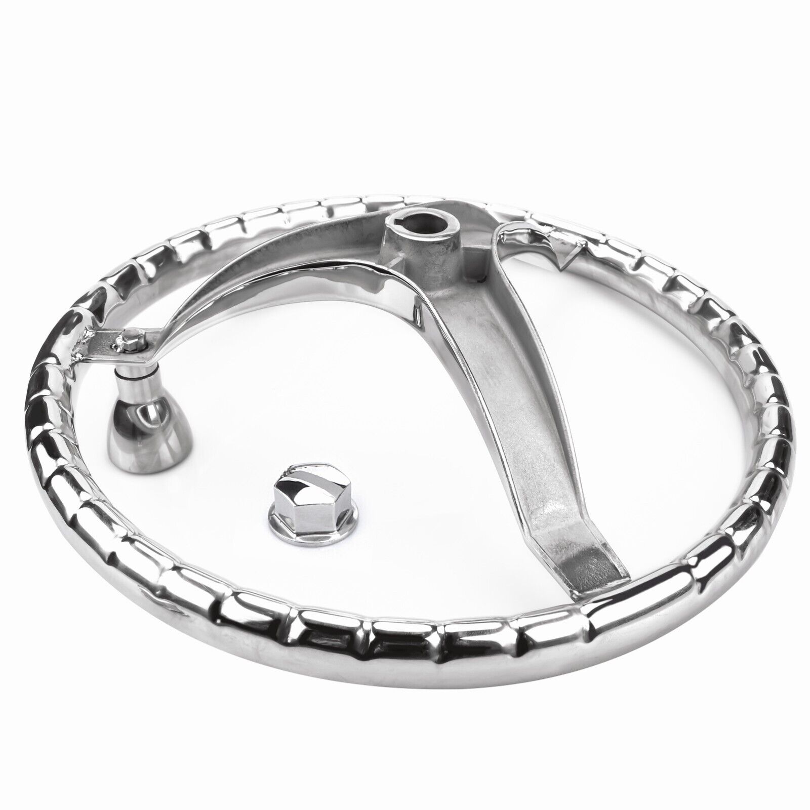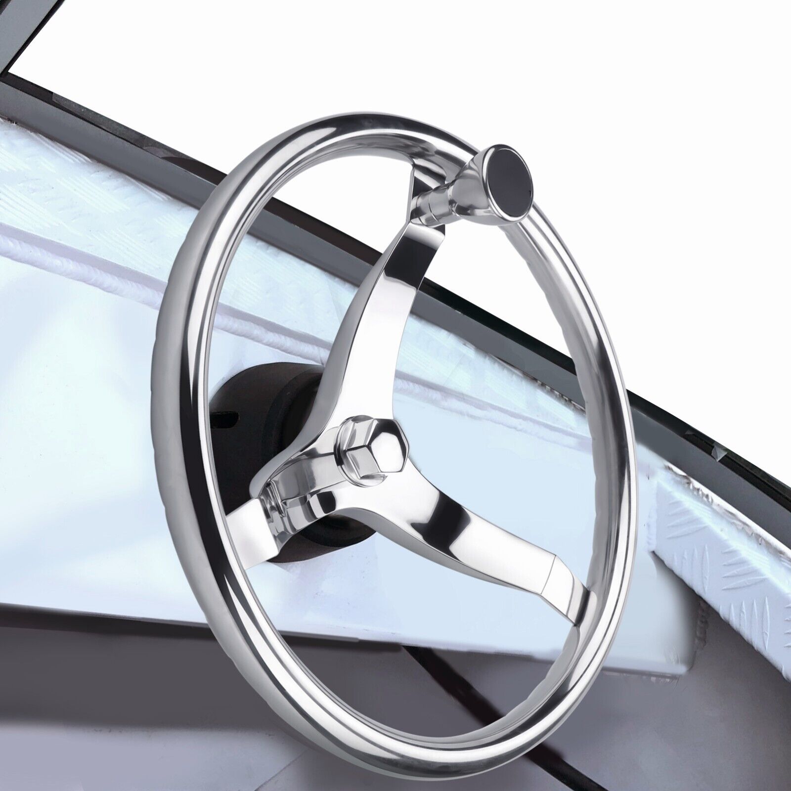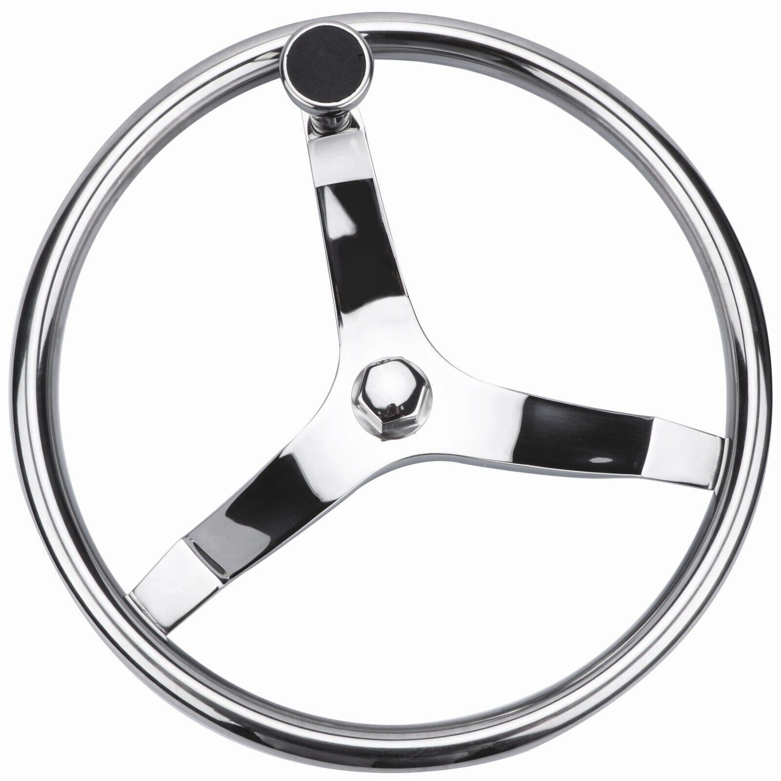 Specification Made of Marine Grade Polished Stainless Steel 3 spoke steering wheel. 15-1/2" diameter, 3-1/2" height. Stainless steel high quality turning knob with teflon washers and adjustable tension. Fits all standard 3/4" tapered shaft helms. Features: 1. Made of Marine Grade Stainless Steel 2. We are selling a new out of box Destroyer style steering wheel with hub mfg part not available. Commonly used on Misty Harbor pontoon boats. 3. Sold as seen in pictures. Customers please note every computer shows colors differently. 4. Polished to a bright mirror finish.Includes black plastic center cap. Note : 1.We provide clear pictures, measurements where possible. Please check as much as possible to make sure the item is the one that you need. 2. Please allow 0.5-1 inch difference due to manual measurement.(1 inch=2.54cm) 3.The color of the actual items may slightly different from the listing images due to different computer screen, thanks for your understanding. 4.Instruction is not included.Professional Installation Is Highly Recommended!