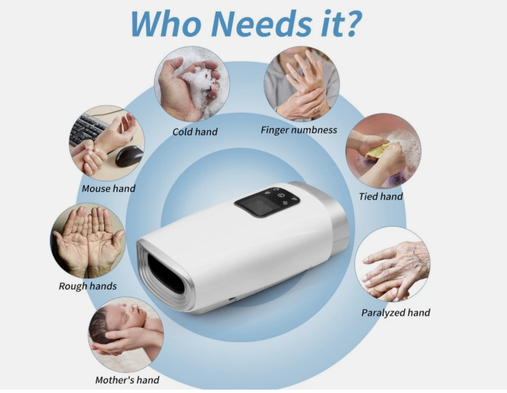 Electric Hand Massager Pain Relief Therapy Air Compression Heat Finger Hand9698