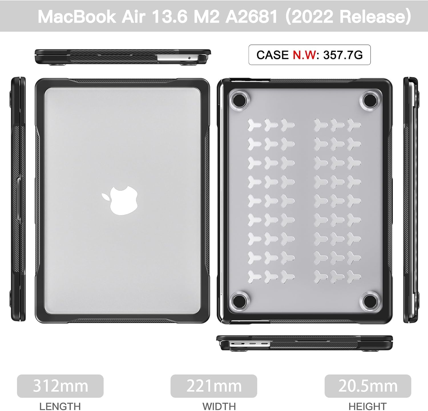 【Heat Dissipation】- Fully vented Compatible with safe heat disbursement. Easy to install and access to all ports. 【Full Protection】- Top case is made of 3D hard plastic to prevent fingerprints, scratches, oil and any damage. All-inclusive design protects your 13.6 inch macbook air device. 【Precise Cutouts】- Precise cutout design ensures face recognition and access to fingerprint, speaker and all other features. Port plugs of the case prevents dust from entering into Tablet. Protection Compatible with your your laptop against scratches accidental drops, scratches, shocks and dust, helping keep your Tablet as beautiful as the day you take it out of the box.