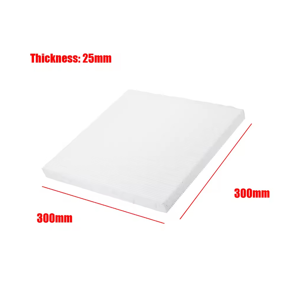 SpecificationName: Air FilterModel: 975858Size: 300x300mmThickness: 25mmColor: WhiteMaterial: PolyurethaneUses: Air filtrationApplicable object: Air FeaturesAccording to the need to cut the appropriate size, the installation is very convenient and quick.Filter paper can effectively filter particles, bacteria, formaldehyde, smoke, dust, fine particles, PM2.5, bacteria, pm10 and so on.Suitable for home fans, air conditioners and air purifiers to provide you and your family with a comfortable living, study and office environment.