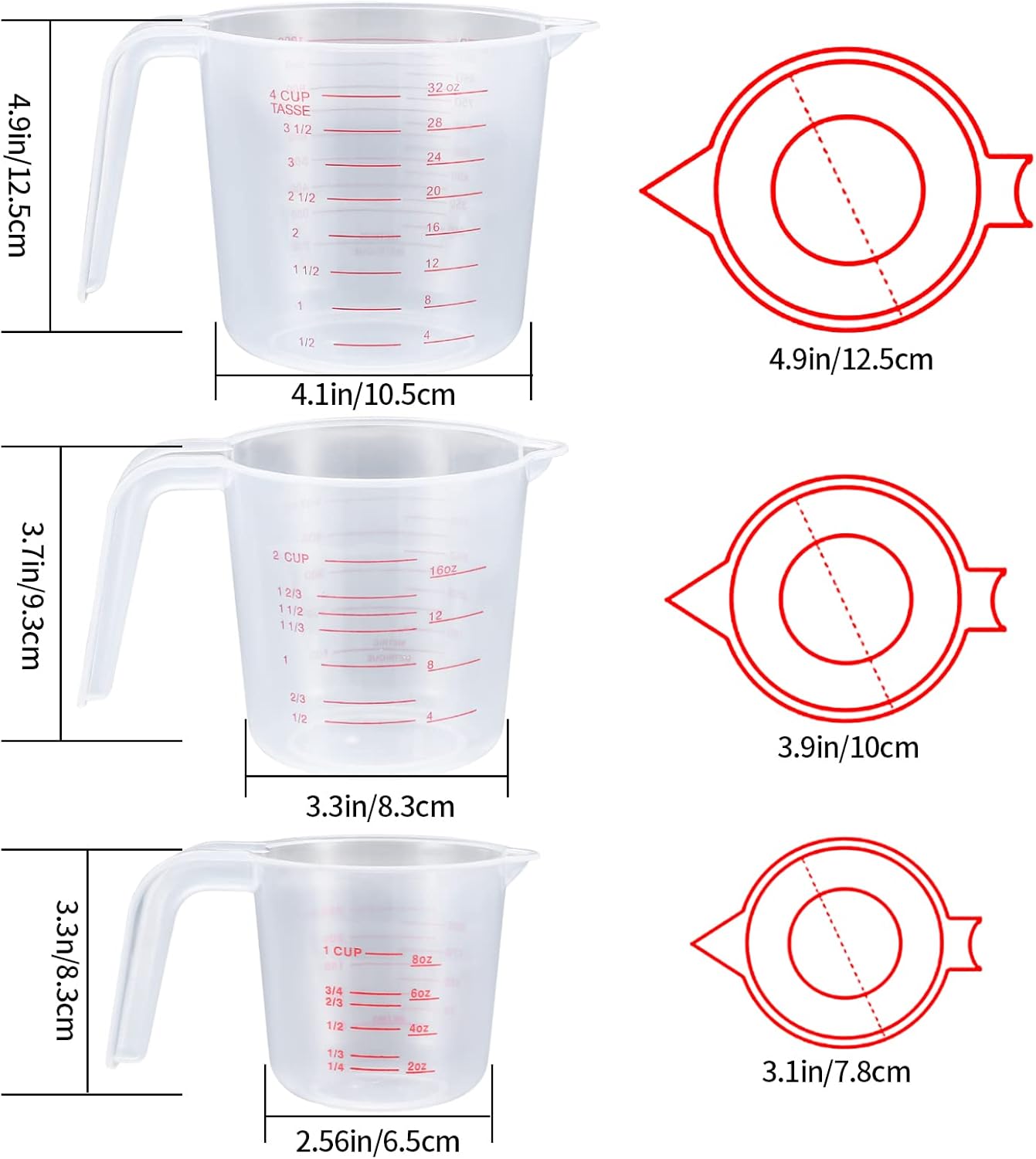 - You will receive 3 pcs of kitchen measuring jugs, in 3 kinds of capacity of 250ml; 500ml; 1000ml.