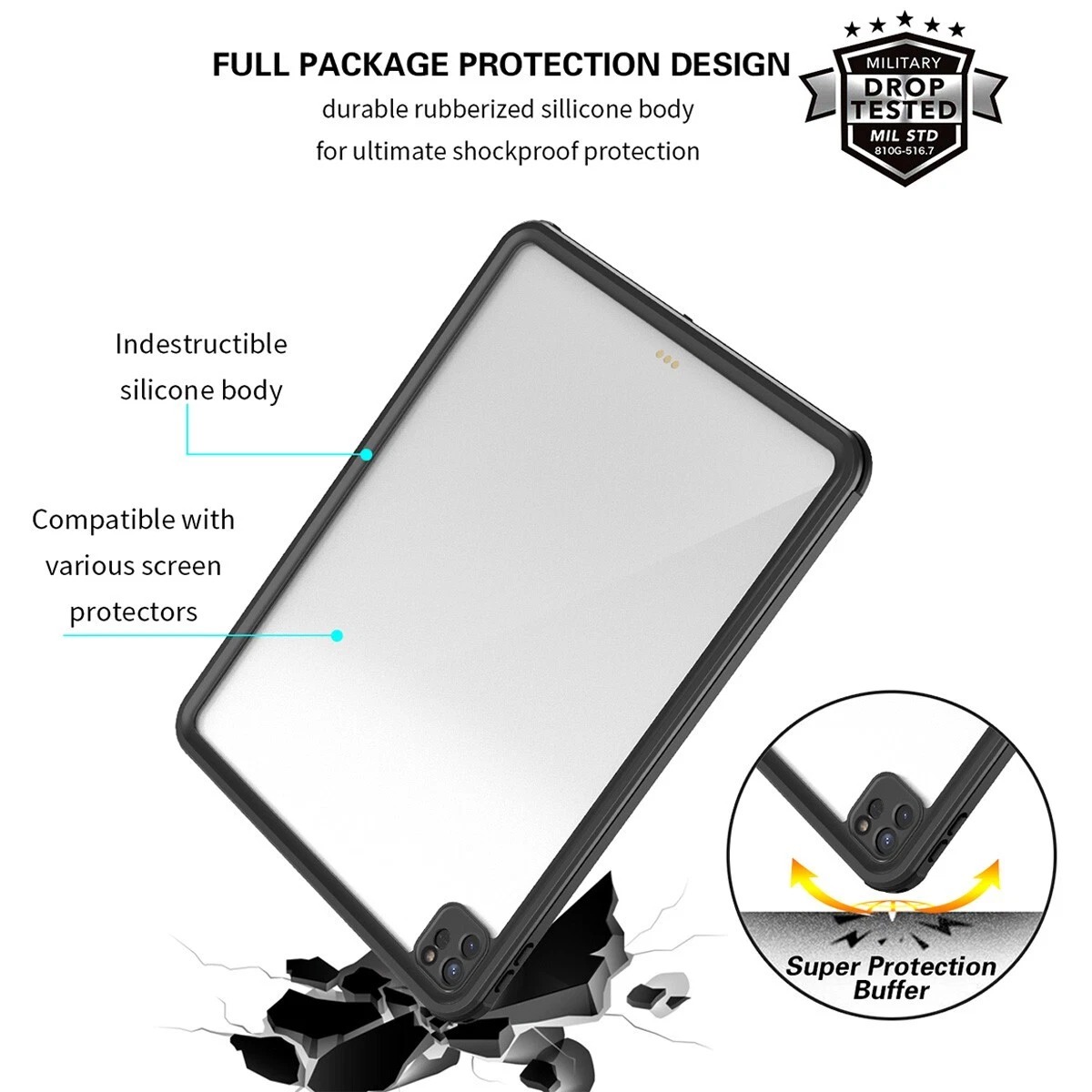 Waterproof: IP68 certified, fully body sealed design enables iPad submerge to underwater 6.6 feet for 30 minutes without any water damage.