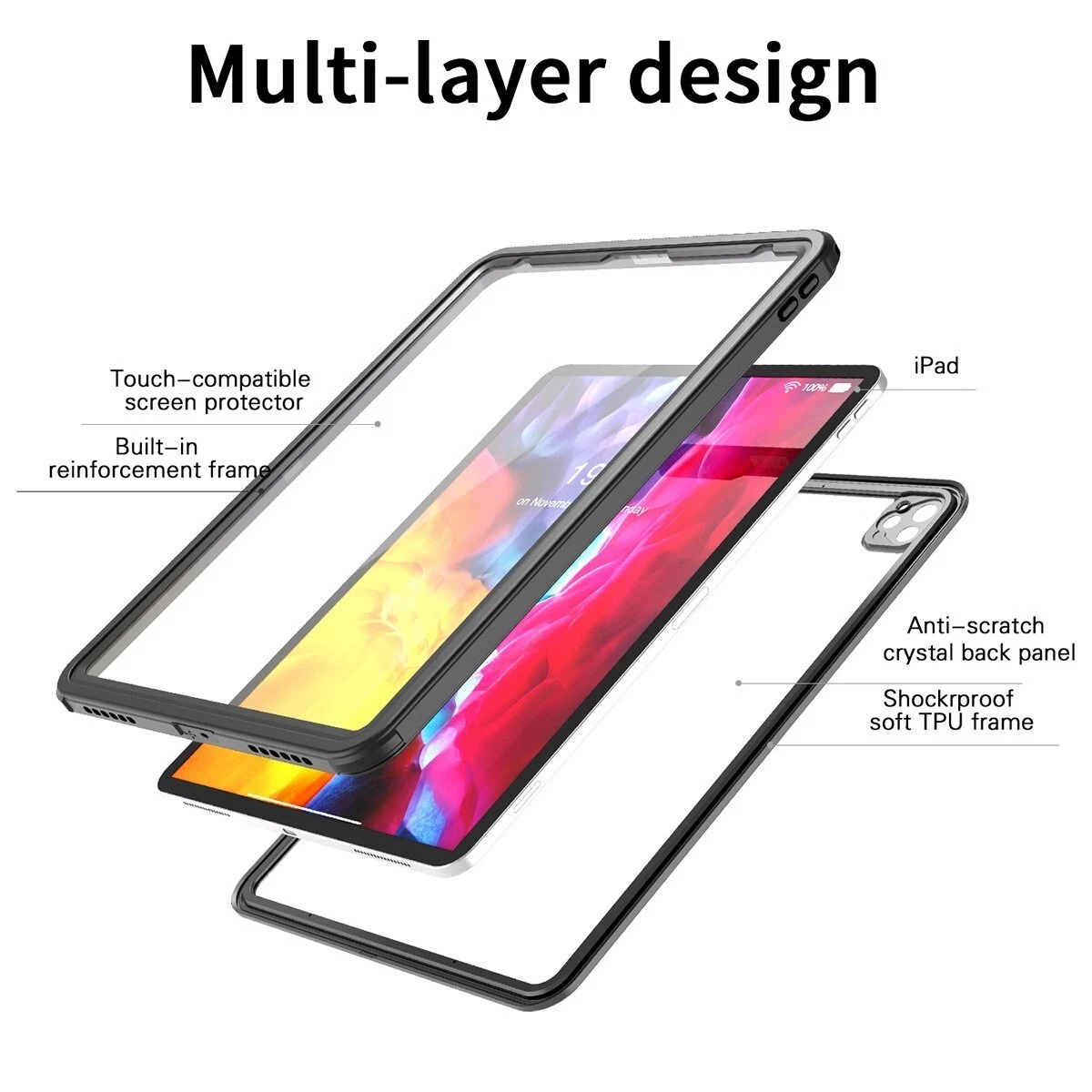 Shockproof. Thicker PC & TPU back cover protect iPad from sudden drop and impact.