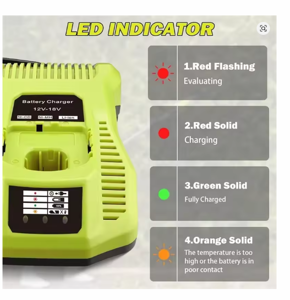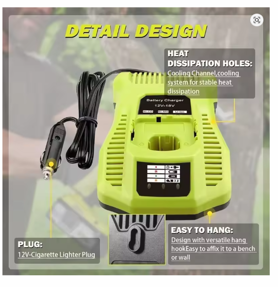 Black For Ryobi Feature: [Vehicle Charger] Replacement for Ryobi 18V Battery P102, P107, P103, P104, P105, P106, P108, P109 Car Charger. Charge batteries from a vehicle's power outlet.[Car Charger for Ryobi 18V Battery] for Ryobi 18V Lithium ion & Ni-cad Ni-Mh Battery. But Cannot charge for Ryobi 40V batteries.[Suitable for Many Scenarios] Can charge 18V batteries whether on the way to job site, traveling between jobs, camping, power failures, or anywhere household power is not available.[Intelligent Design] LED indicator light gives real-time communications of battery charging status (charged or charging). Compact Size charger is handy to use and store. Green For Ryobi Feature: 1.Charges for Ryobi 12V 14.4V 18V ONE Lithium/Ni-Cd/Ni-Mh batteries and support quick charging, Replacement original battery charger P117 P118 P135 P119 P118B, Charging Current:3A,Charging Input: 12V Output: 18V,Cigarette Lighter Plug.2.Wall mounting: User put it anywhere needed.This Carger Enables batteries to be charged while driving to work or on a job site.3.Charge 12-23 Volt MAX batteries and keep your tool ready, whether on the way to job site, traveling between jobs, camping, power failures, or anywhere household power is not available.4.LED indicator light gives real-time communications of battery charging status (charged, charging, and battery too hot or too cold). √ Compact Size charger is handy to use and store.built-in protection prevents the battery and charger from overheating, overcharging and short-circuiting