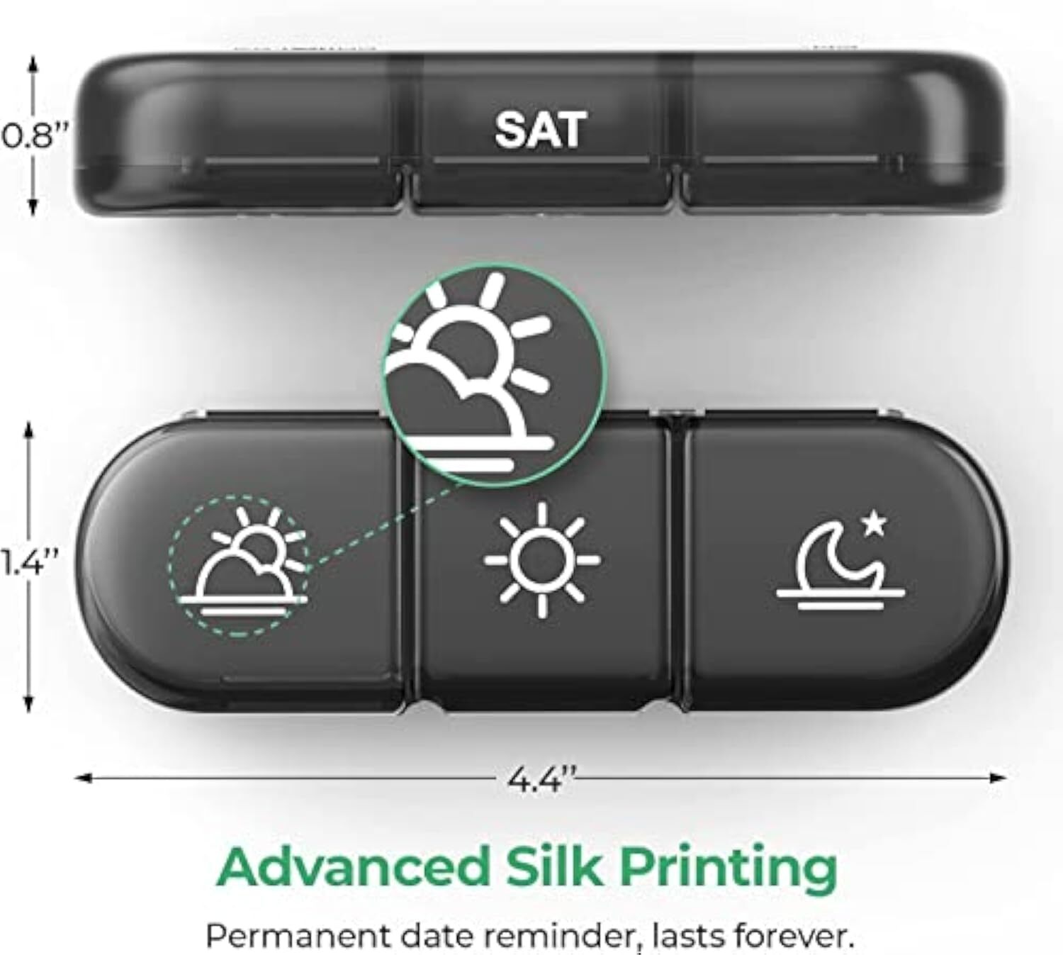 4. Permanent Date Reminder: After using it for a period of time, don't worry about the letters on the lid fading, our upgraded printing of medication organizer