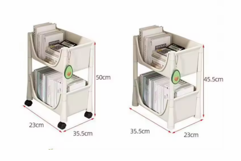 2-Layer Trolley Bookshelf & Slit Storage Cabinet – White Organizer Rack