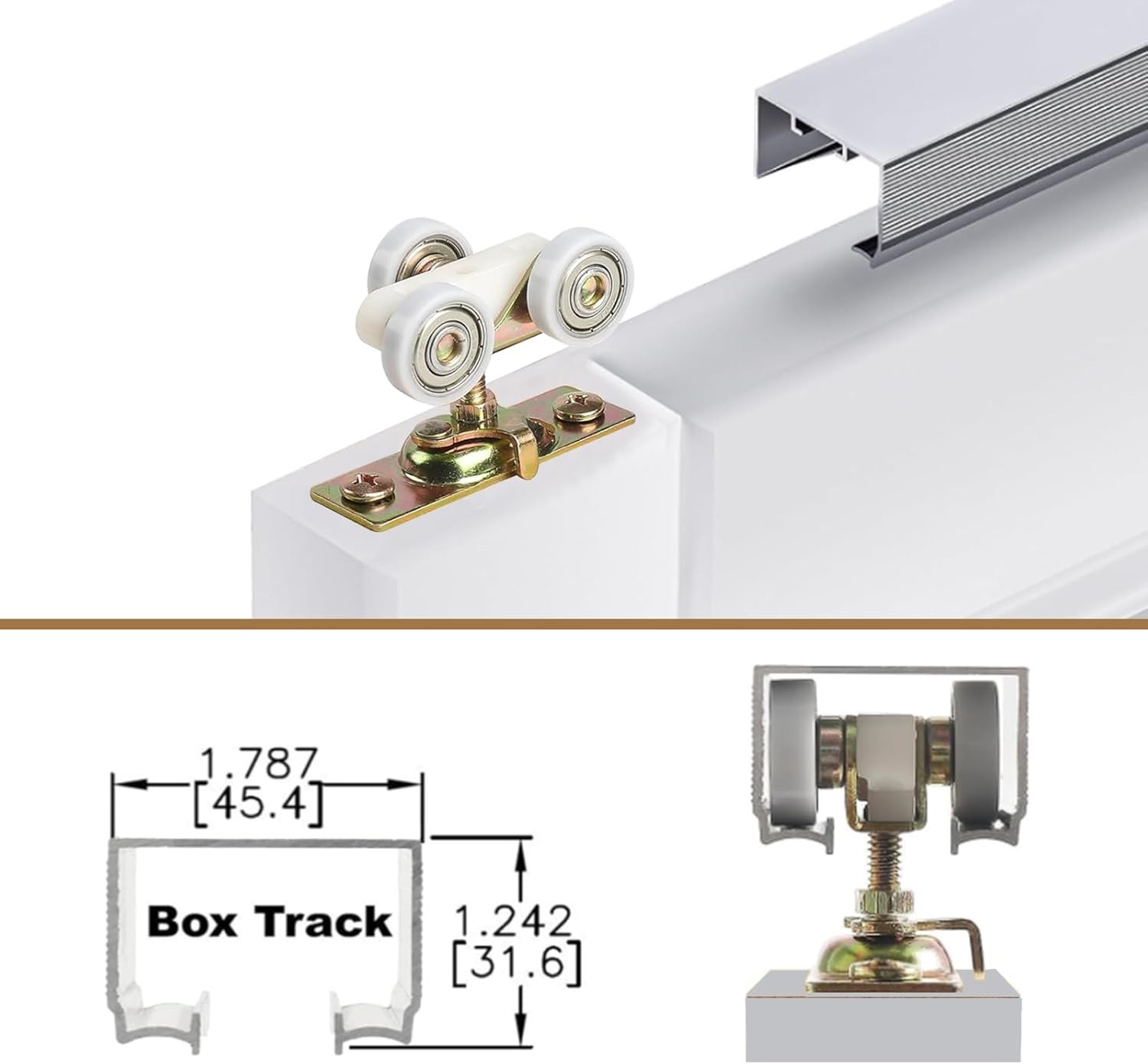 【Smoothly and Steady】Features a 1 Inch Diameter ball bearing wheels for smooth and long lasting quiet operation.Used on 1-3/8 inch thick doors, Max Door Weight up to 220lbs (100kg).