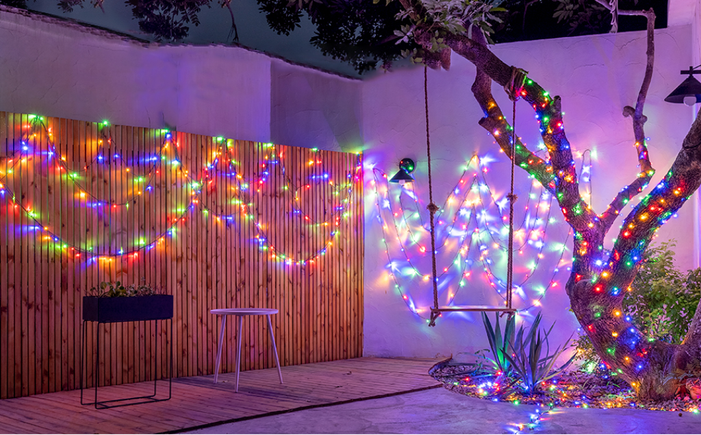 500 LED Solar Snowing Icicle lights can be safely used indoor and outdoor. This is powered by the sun, 8 functions. 50m approx light length.
