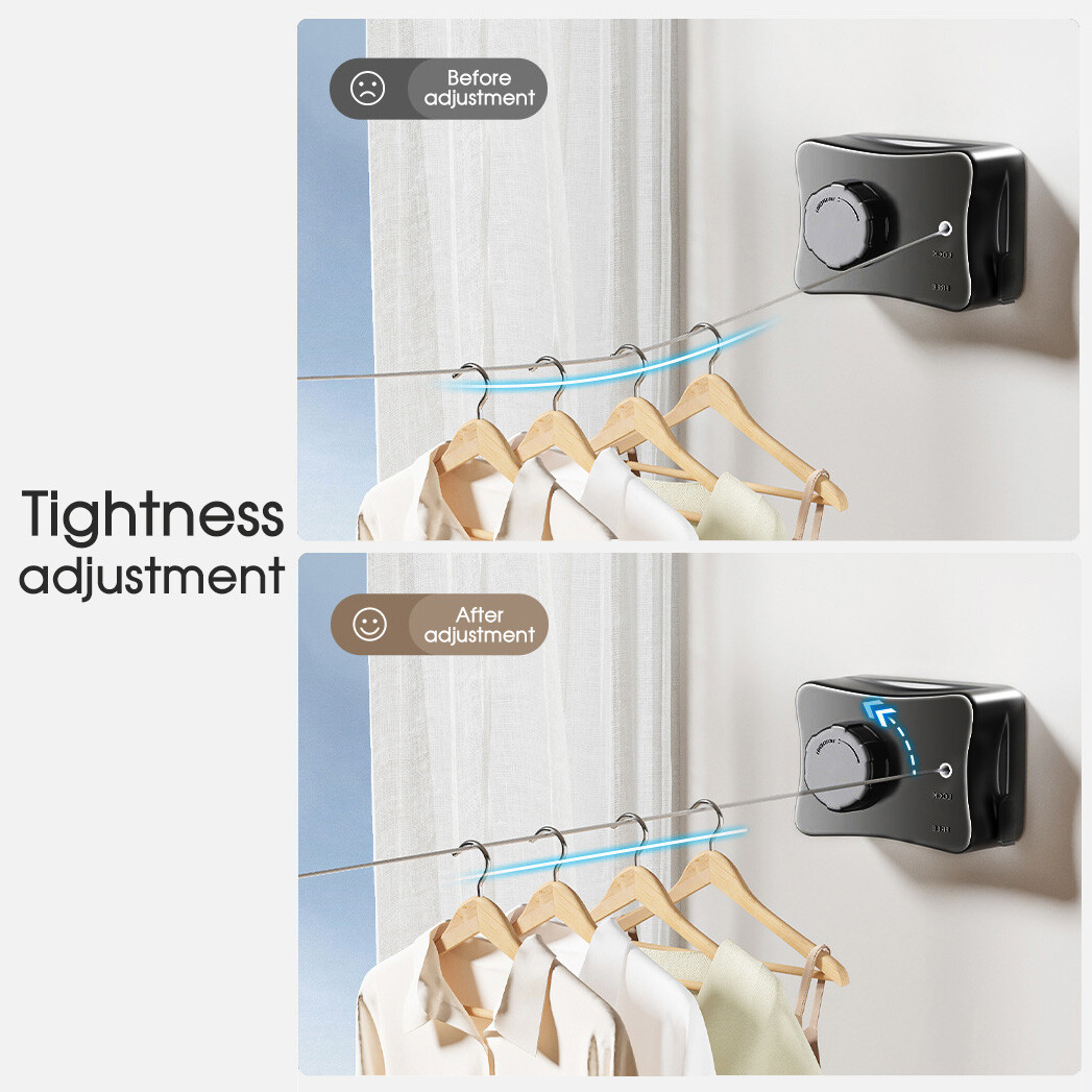 Use Simply: Eliminate sagging and clothes gathering on your laundry lines with our Retractable Clothesline's anti-drooping adjuster. Adjust the tightness of the rope with ease for an easy laundry experience.