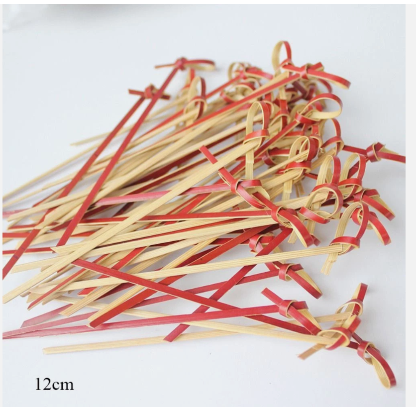Disposable Cocktail Picks Bar Tool Bamboo Knot Skewers Fruit Forks Add a touch of sophistication to your food and drink presentation with these Disposable Bamboo Knot Picks. Perfect for bartenders, caterers, and home entertainers, these eco-friendly skewers are ideal for garnishing cocktails, serving hors d'oeuvres, or pinning fruit and snacks with flair. ⭐ Key Features: Stylish Knot Design: Hand-tied looped knot adds a decorative finish to drinks and appetizers Food-Safe Bamboo: Made from natural, biodegradable bamboo—smooth surface, no splinters, no chemical coatings Multi-Purpose Use: Ideal for cocktails, sandwiches, fruit platters, cupcakes, cheese boards, and more Disposable Convenience: Single-use design for easy cleanup—no washing required Perfect for Events: Great for weddings, birthdays, banquets, BBQs, and bar service