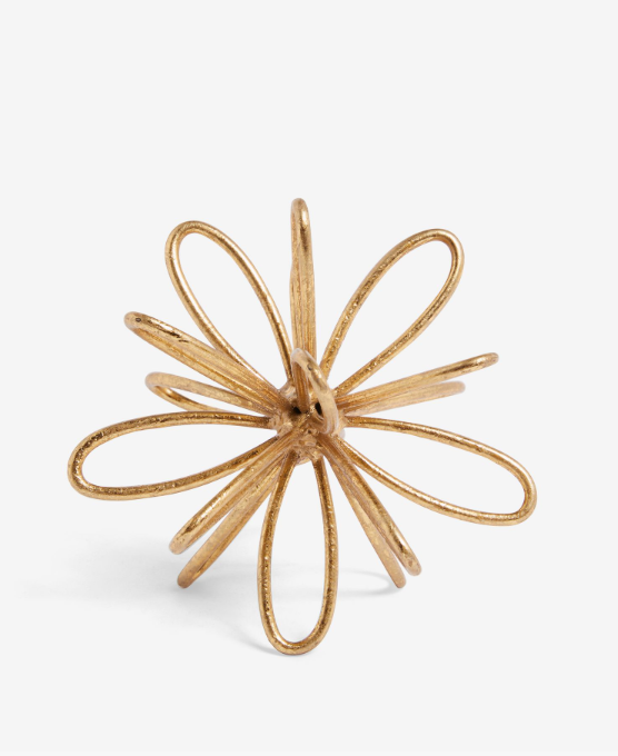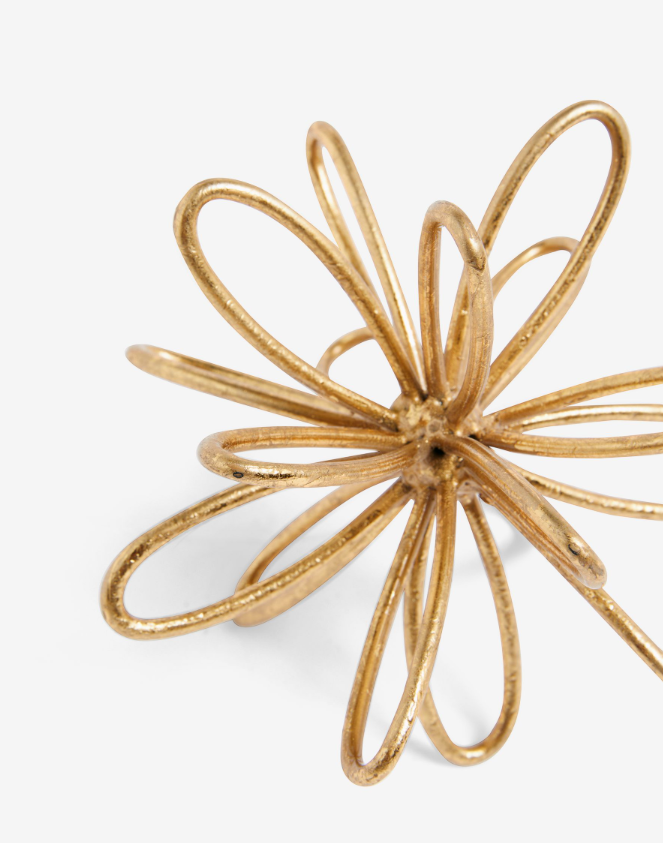 Gold Decorative Metal Flower Ornament Add a touch of timeless charm to your space with this Gold Decorative Metal Flower Ornament, crafted to elevate any room with its sculptural elegance. Whether placed on a dining table, sideboard, or shelf, it serves as a radiant centerpiece that blends art and sophistication. ⭐ Key Features: Stylish Floral Design: Intricately shaped petals and layered textures create a visually striking metallic bloom Premium Metal Construction: Made from 100% metal for durability and a polished gold finish that resists tarnishing Compact & Versatile: Ideal for use as a table centerpiece, shelf accent, or decorative tray filler No Assembly Required: Ready to display straight out of the box Perfect Gift Idea: Great for housewarmings, weddings, or festive occasions