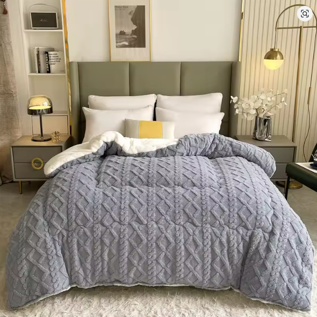 New Super Thick Winter Warm Blanket for Bed Artificial Lamb Cashmere Weighted Blankets Soft Comfortable Warmth Quilt Comforter Wrap yourself in cloud-like comfort this winter with our premium artificial lamb cashmere blanket—designed to deliver warmth, softness, and style. ✅ Key Features: Ultra-Soft Texture – Double-sided fleece mimics lamb cashmere for a plush, skin-friendly feel Weighted Warmth – 4kg to suit your comfort and insulation needs Three-Dimensional Quilting – Prevents clumping and ensures even heat distribution across the blanket Durable & Fade-Resistant – High-quality knit construction resists deformation and maintains color Elegant Design – Adds a luxurious touch to any bedroom décor