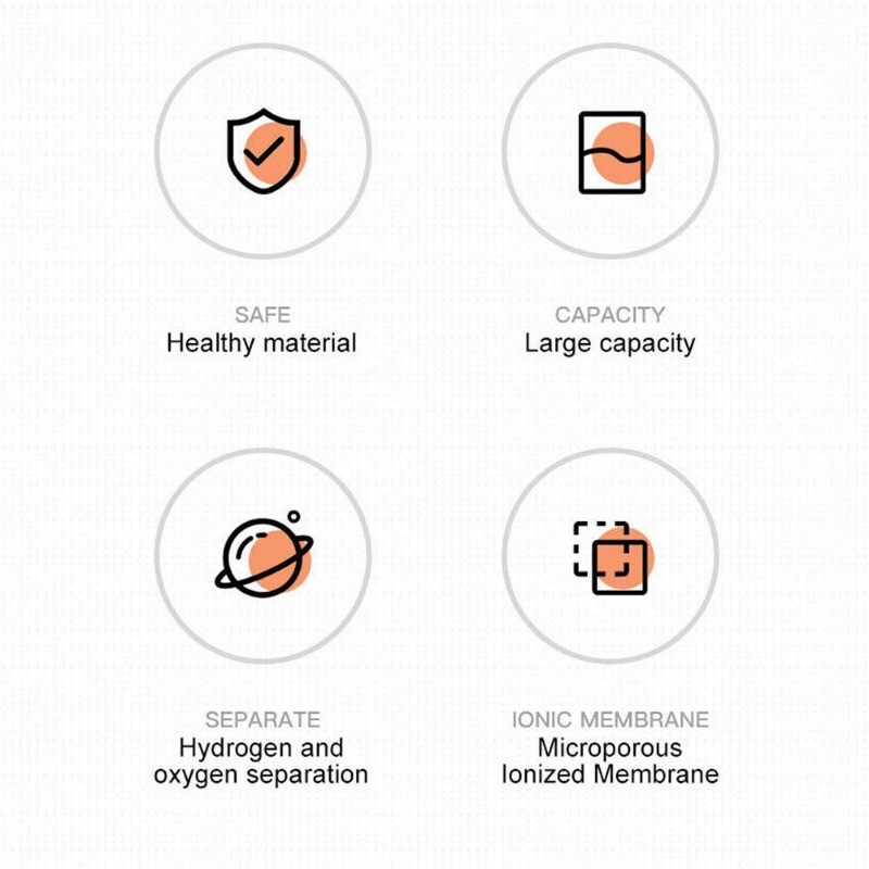 The Q12 hydrogen water generator makes the water in a high hydrogen concentration from 900ppb-2300ppb,ORP from -200mV to -600mV.Most Important,with its high quality of USA DUPONT N117 membrane,it puts only pure H2 into the water. Oxygen, Ozone and Chlorine are separated out. So the hydrogen water you get is 99.99% pure H2 and NO Chlorine,No Oxygen,No H2O2,NO Ozone. Able to attach disposable plastic drinking water bottles,portable for travel,work and office. Any kind of water can be used:Mineral Water,Pure Water,and Distilled Water is welcomed.Additionally,this machine uses PEM and SPE technology to make pure 99.99% H2 hydrogen.