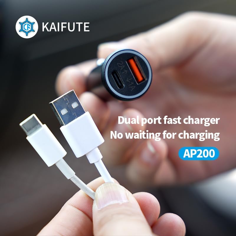 Dual Car Charger AP200 – Smart 2-in-1 USB-C, Mobile Locator, iOS Compatible